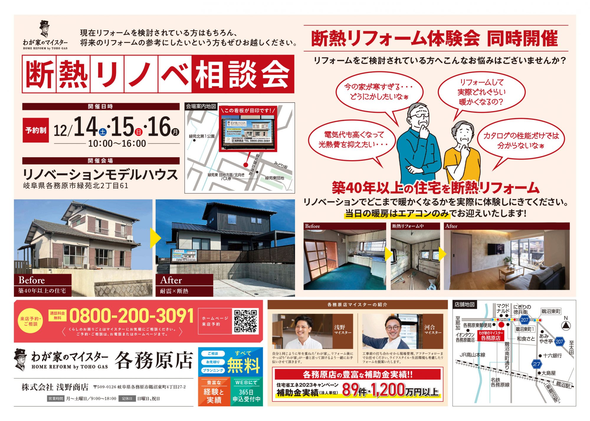12月14日(土)~16日(月)『断熱リノベ相談会』を開催します。