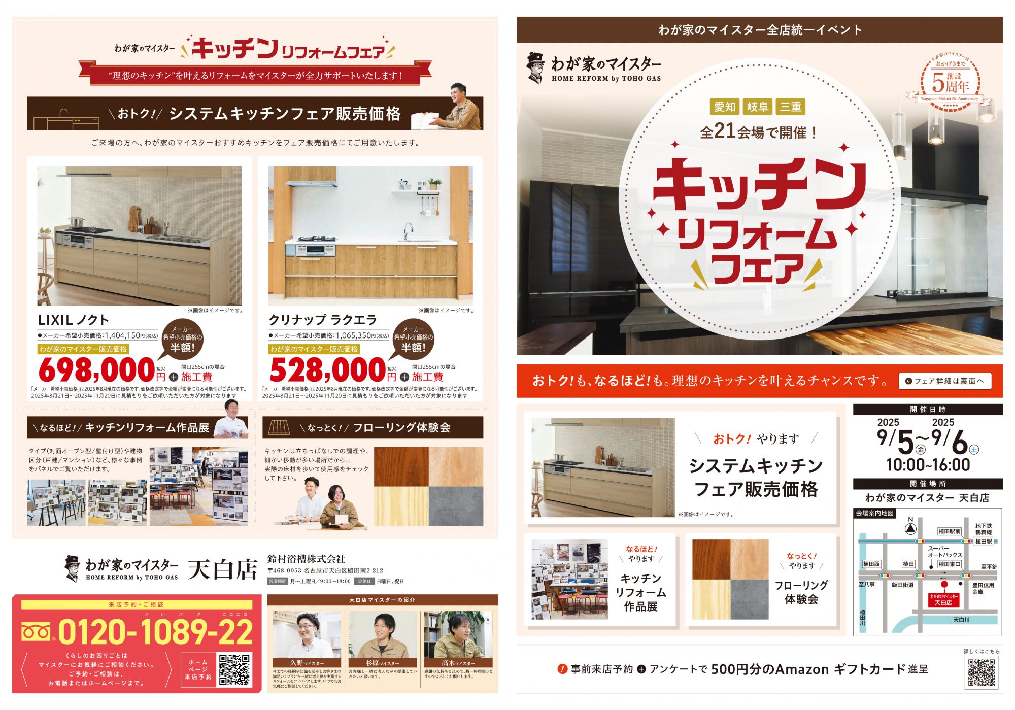 9月5日(金)・6日(土)『キッチンリフォームフェア』を開催します。