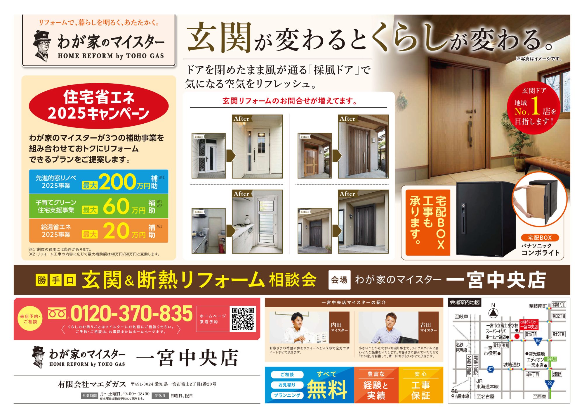 10月1日(水)~31日(金)『勝手口 玄関&断熱リフォーム相談会』を開催します。