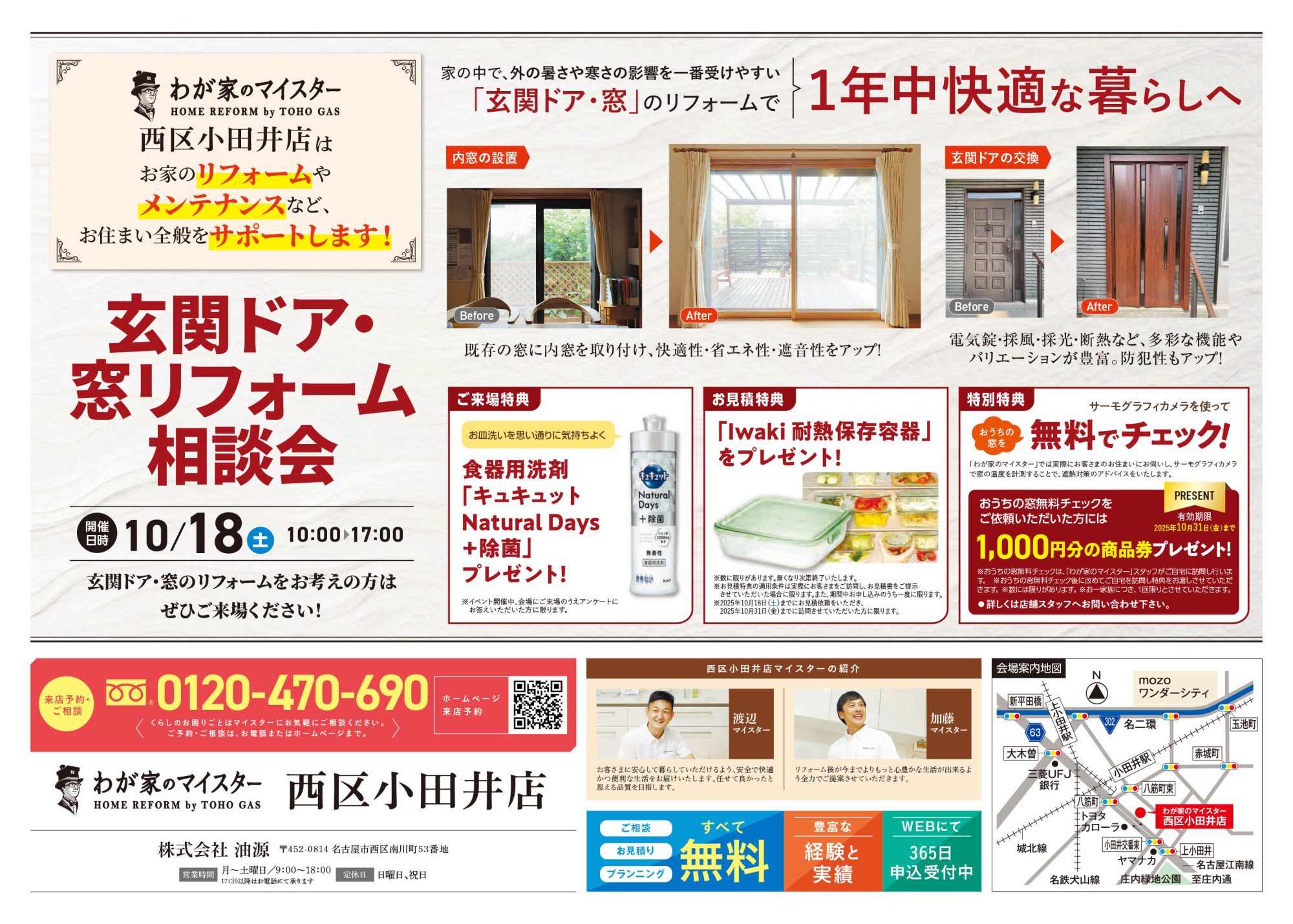 10月18日(土)『玄関ドア・ 窓リフォーム 相談会』を開催します。
