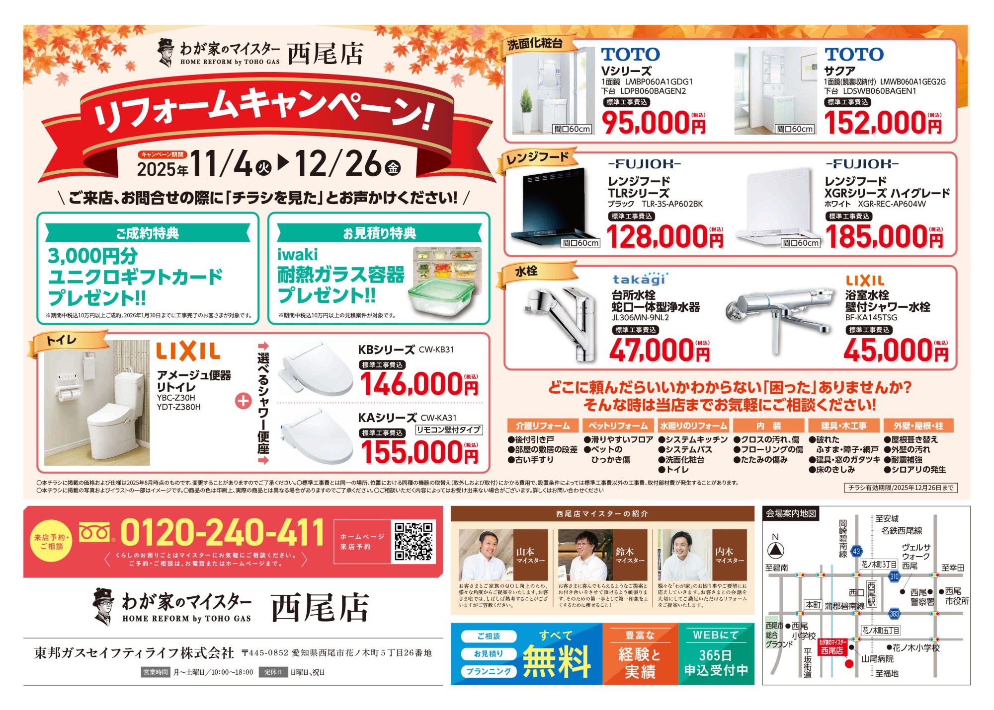 11月4日(火)~12月26日(金)『リフォームキャンペーン!』を開催します。