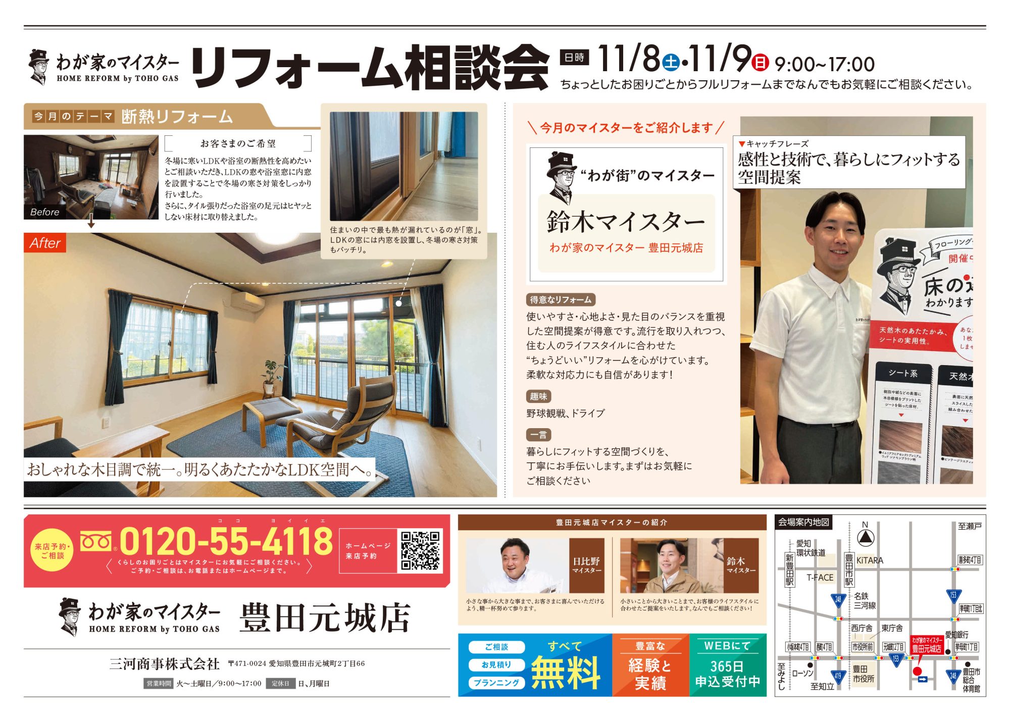 11月8日(土)・11月9日(日)『リフォーム相談会』を開催します。
