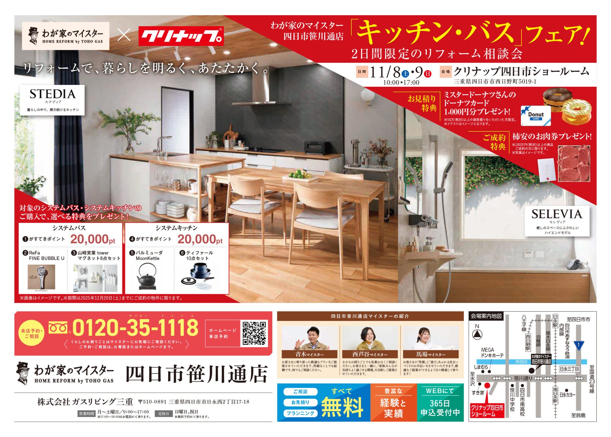 11月8日(土)・11月9日(日)『「キッチン・バス」フェア!』を開催します。