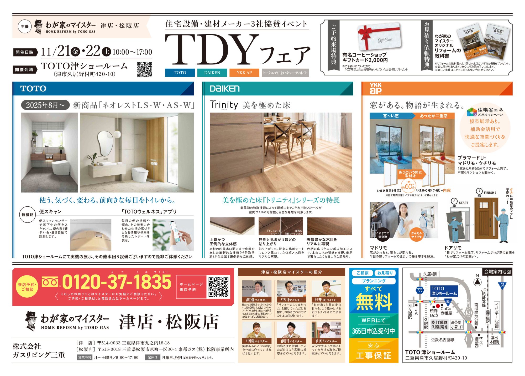 11月21日(金)・11月22日(土)『TDYフェア』を開催します。