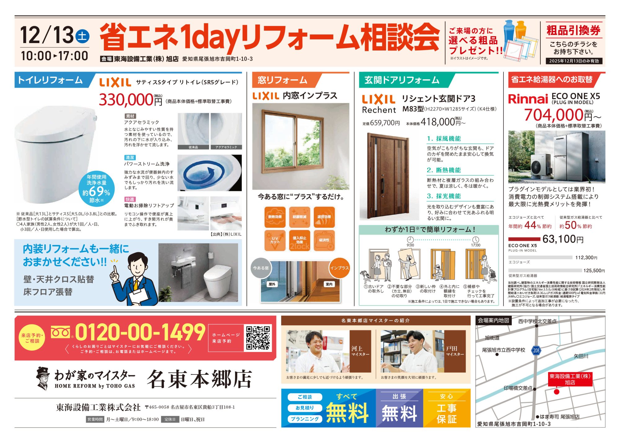 12月13日(土)『省エネ1dayリフォーム相談会』を開催します。