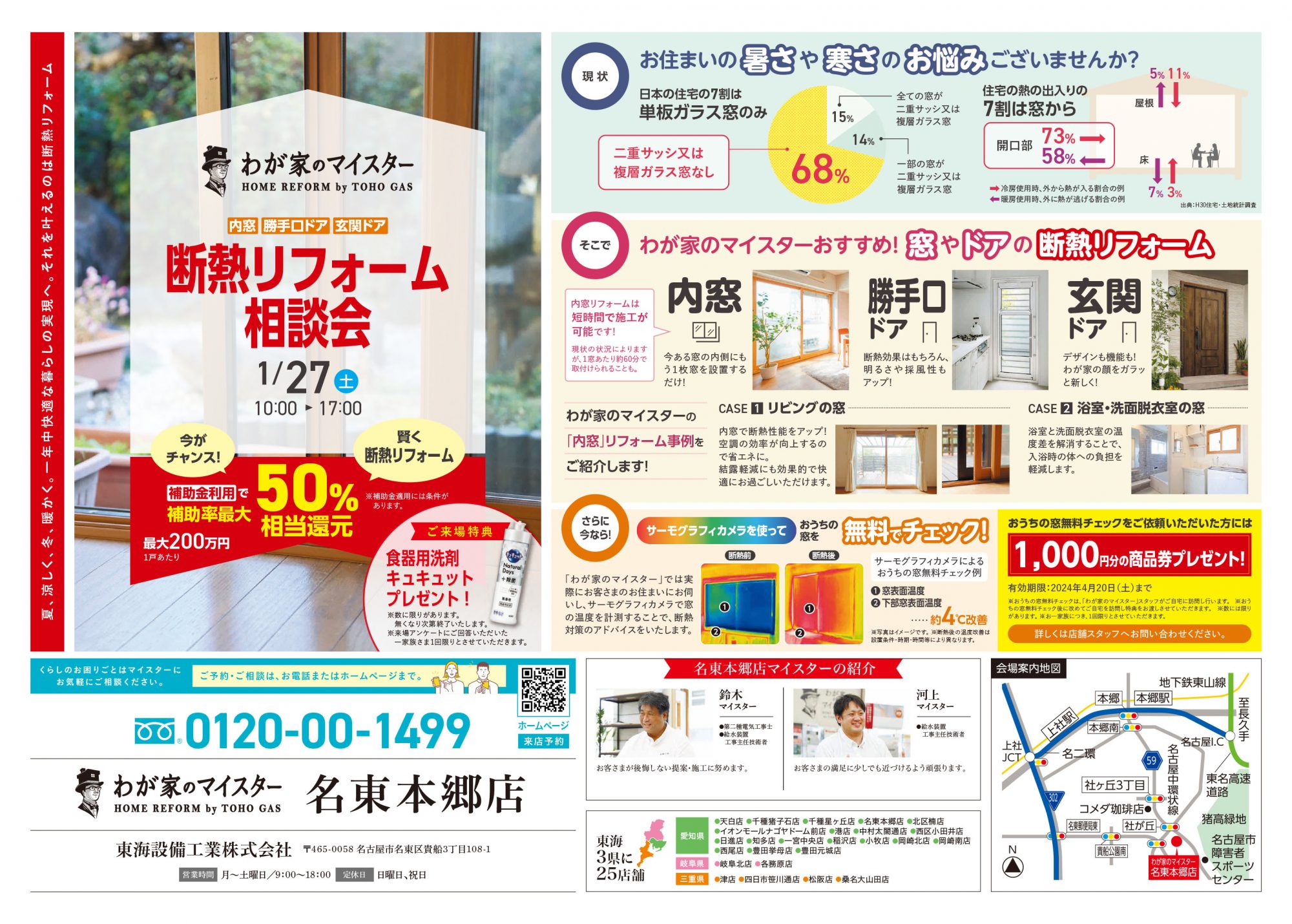 1月27日(土)『断熱リフォーム相談会』を開催します。