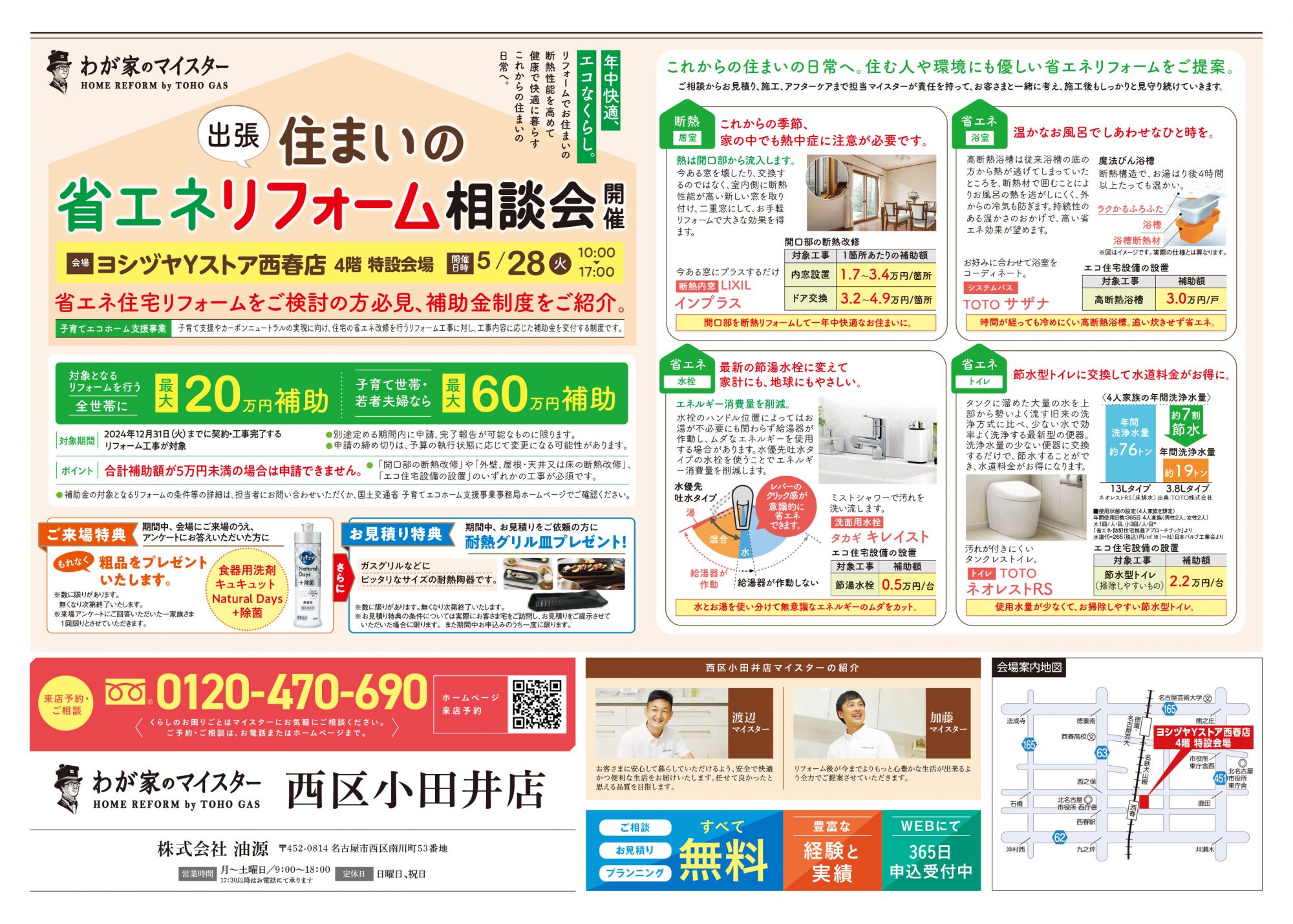 5月28日(火)『出張 住まいの省エネリフォーム相談会』を開催します。