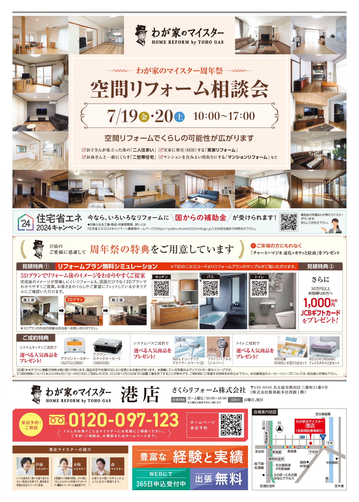 7月19日(金)・20日(土) わが家のマイスター周年祭『空間リフォーム相談会』を開催します。