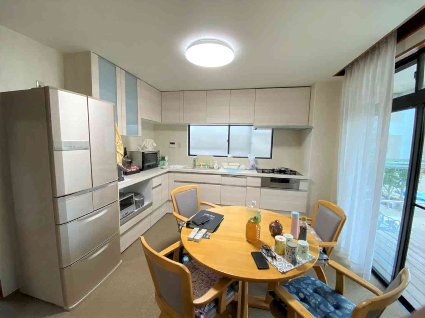 浴室は、現地調査で正確に寸法を測り、脱衣室の広さも確保しながら最大限の広さの浴槽をご提案させていただきました。キッチンは、食器棚と家電をまとめてすっきり収納できるL型タイプに取替えし、キッチンパネルはご主人さまのお気に入りの柄にしたことで、部屋全体に色の統一感が生まれました。また、既設のペンダントライトをシーリングライトに交換することで、広々とした空間をご提案させていただきました。窓まわりは、掃除がしやすいようキッチンパネルで囲いました。