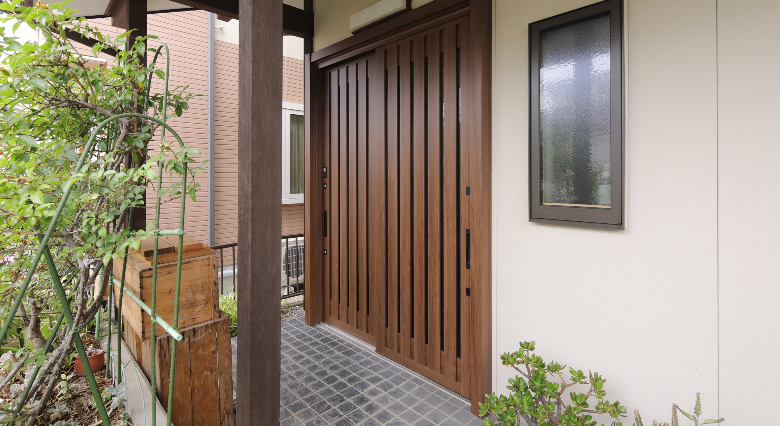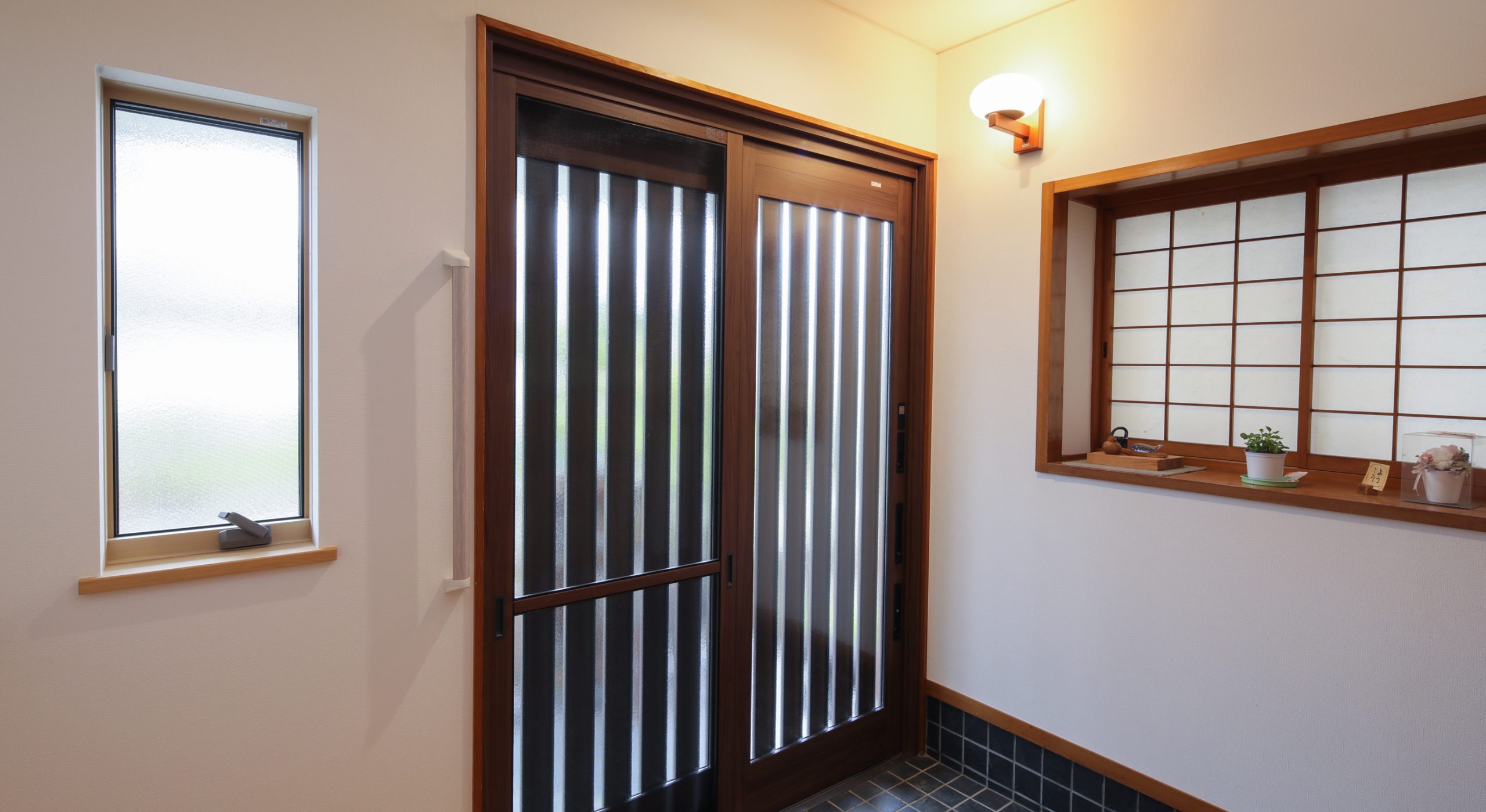 玄関ドアは断熱仕様の引き戸に取替え、タッチキーを採用することで鍵の開錠・施錠もスムーズに。