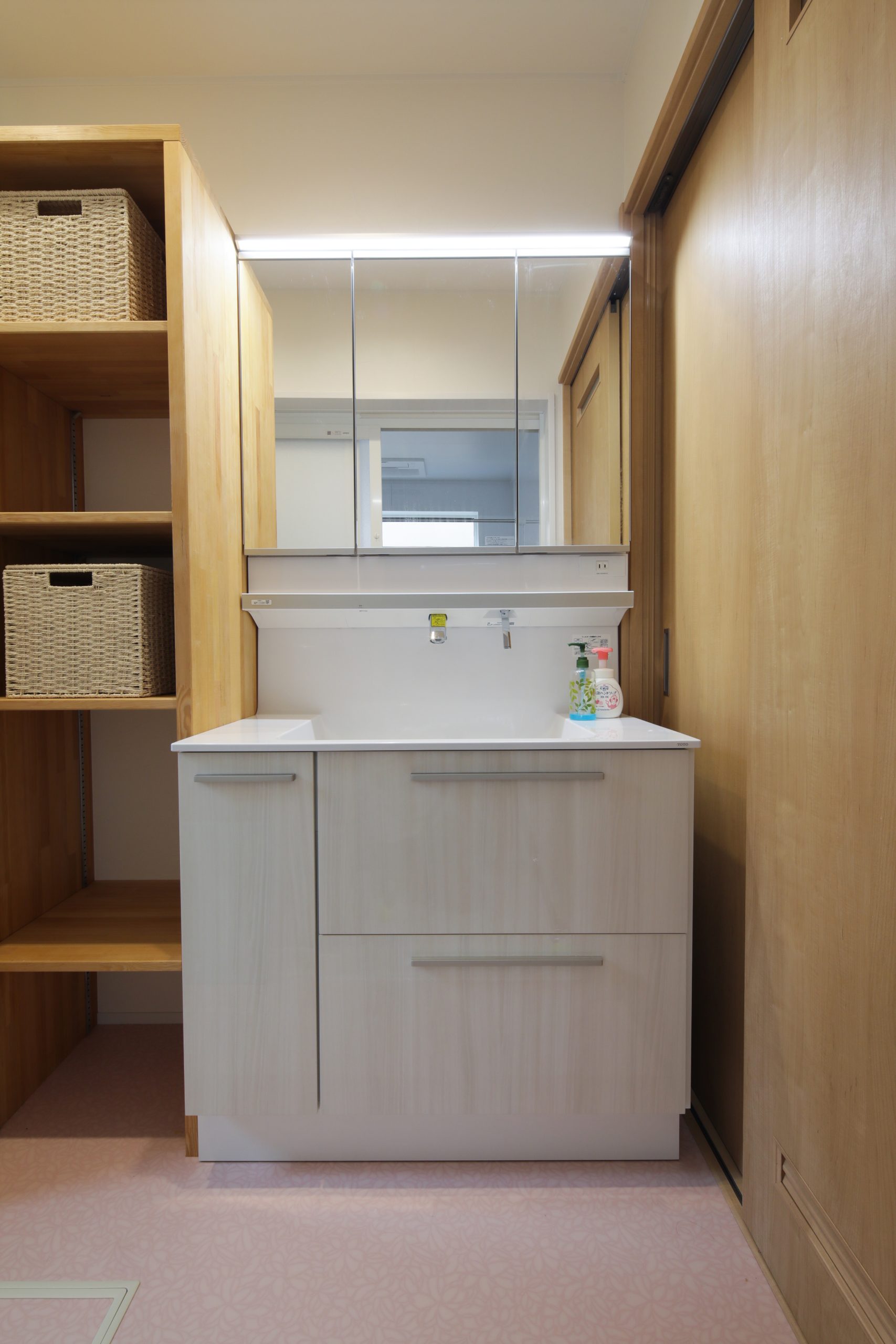 洗面化粧台取替え、クロス貼替え、フロア張替え、窓取替え、照明取替え、衣類乾燥機新設
