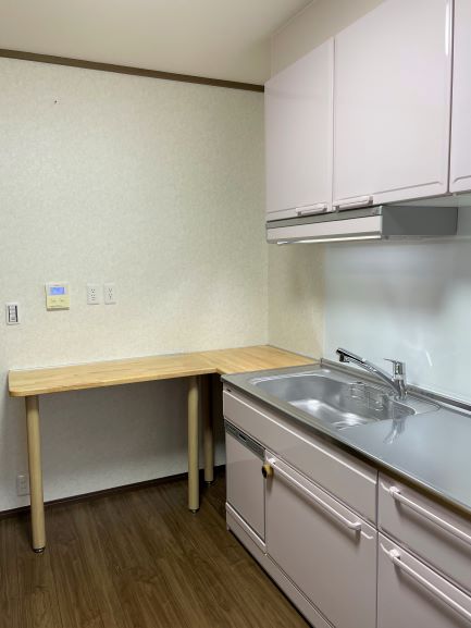 古くなったキッチンのお取替えでご相談をいただきました。収納や家事動線の面で使い勝手をよくしたいとのことで、キッチンと連続させる形のカウンターを造作できないかとのご要望でした。