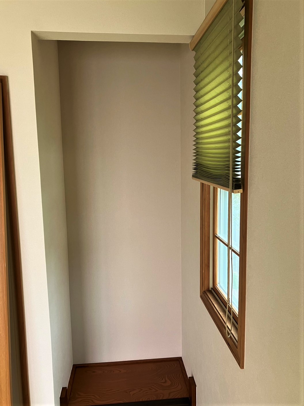クロスについては、奥の一面だけワントーン下げた色味にすることで、空間に奥行きが生まれるように仕上げました。
