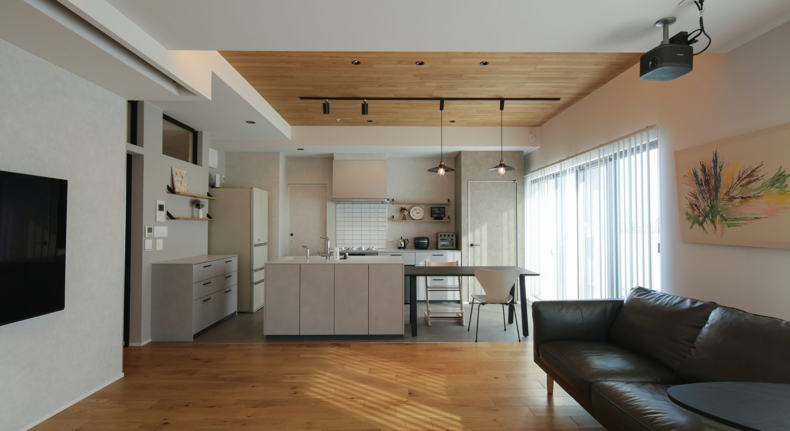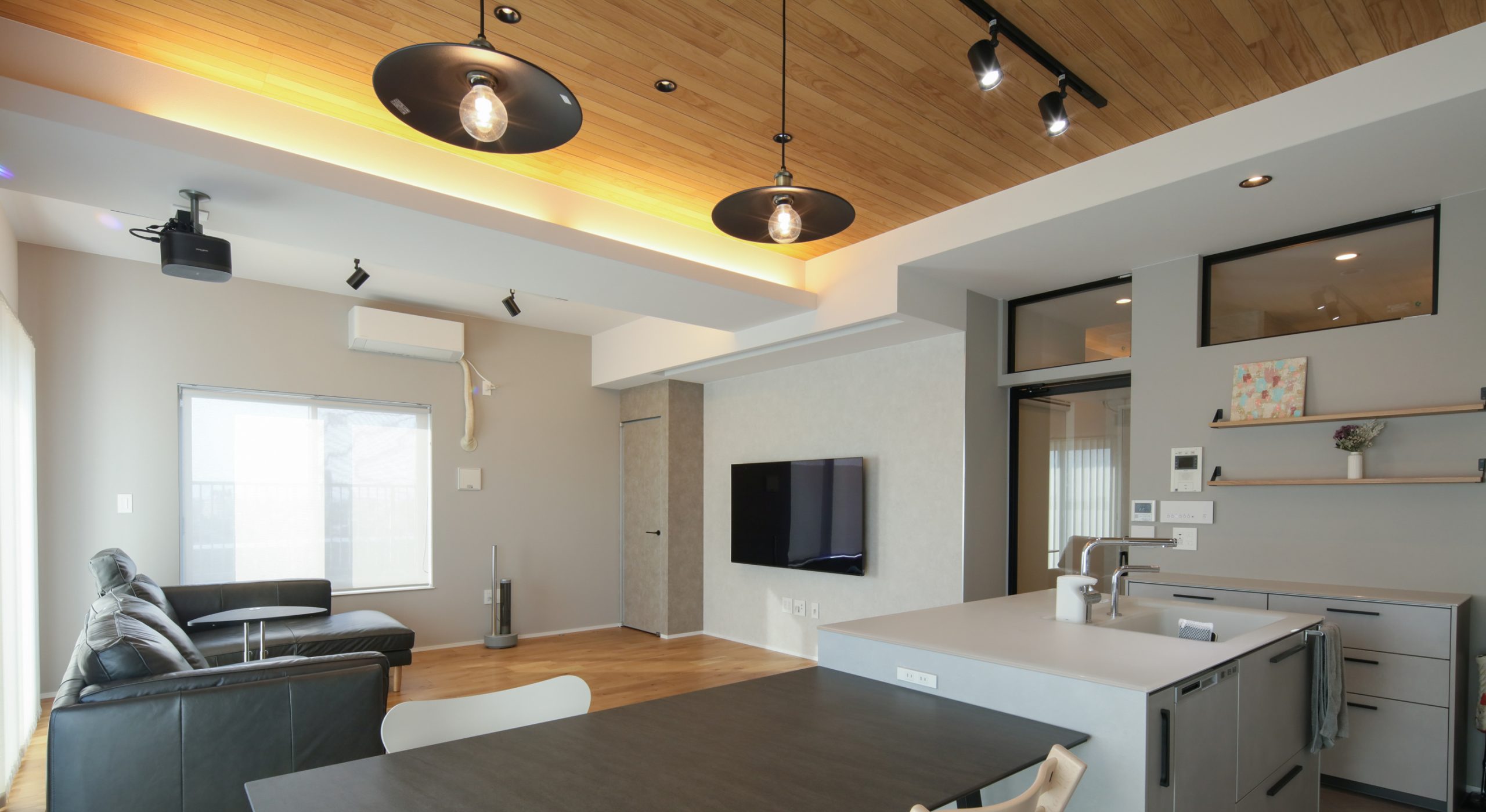 LDKは、梁を生かしながら間接照明で立体感が出る空間をご提案させていただきました。