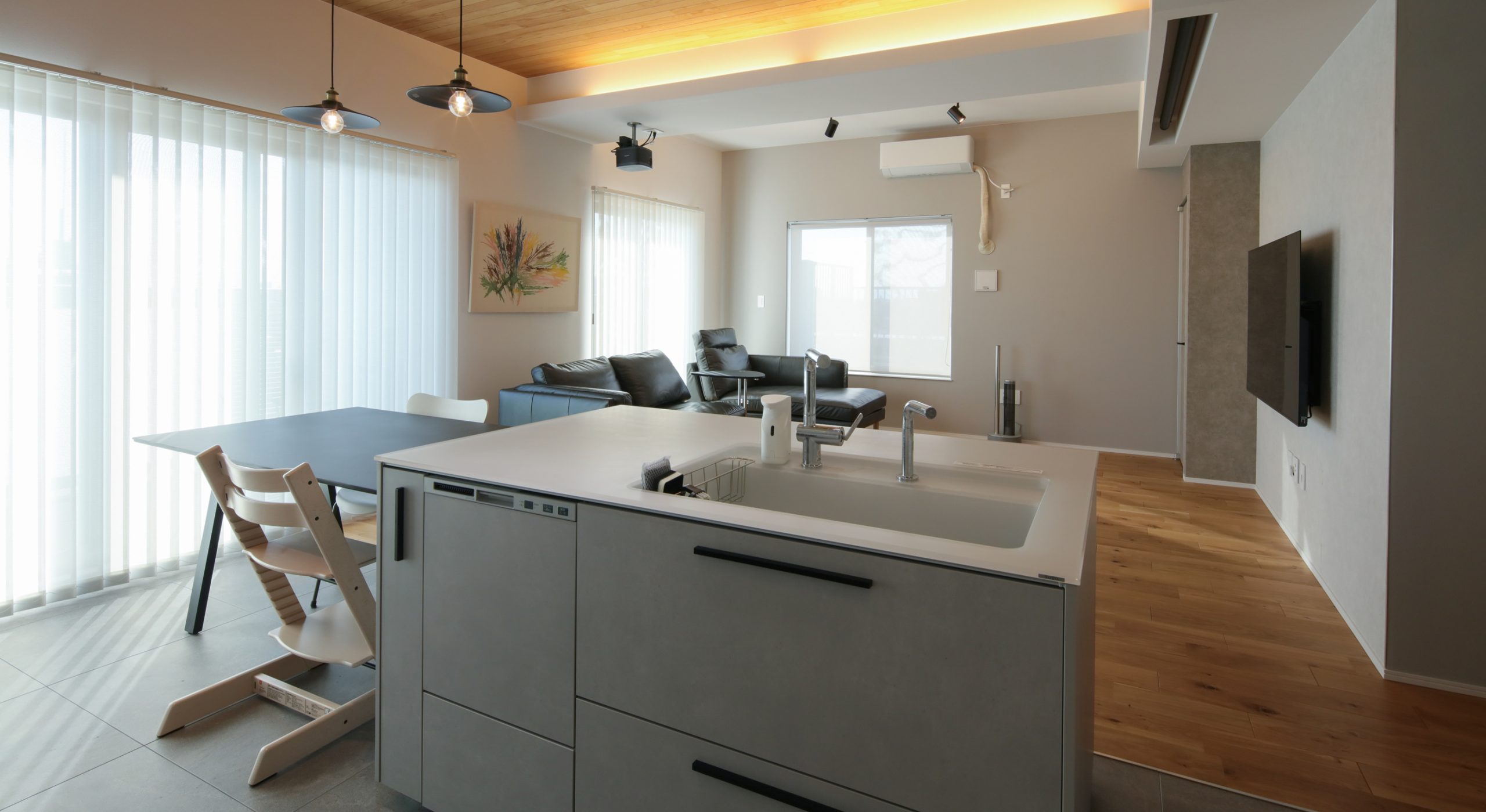 キッチンは、家事効率と家族との食事を楽しめる配置に。