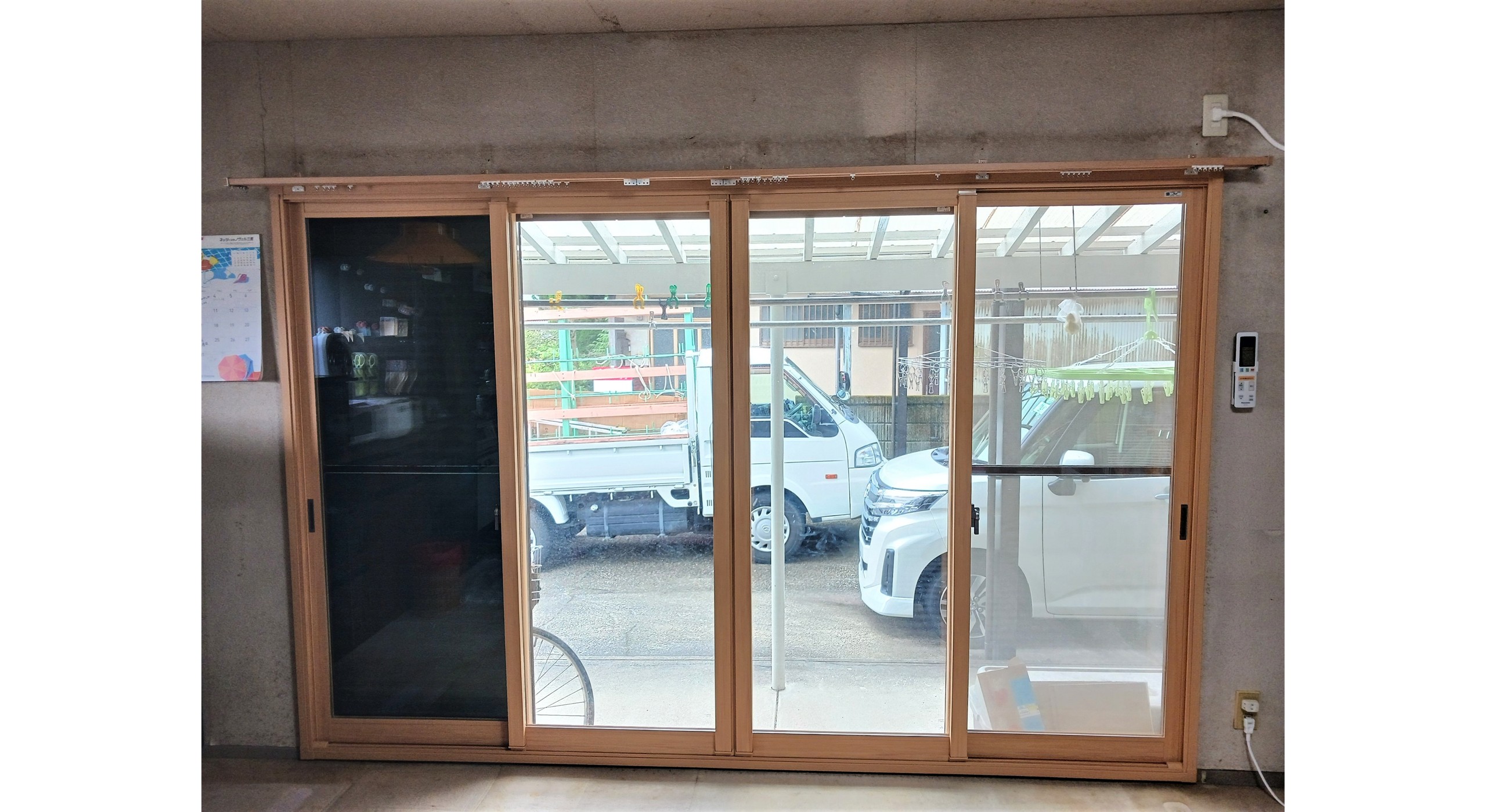 冬場、掃き出し窓からの冷気が寒いとお困りでした。カーテンレールが傷んでいるため、合わせてリフォームしたいとのご希望でした。