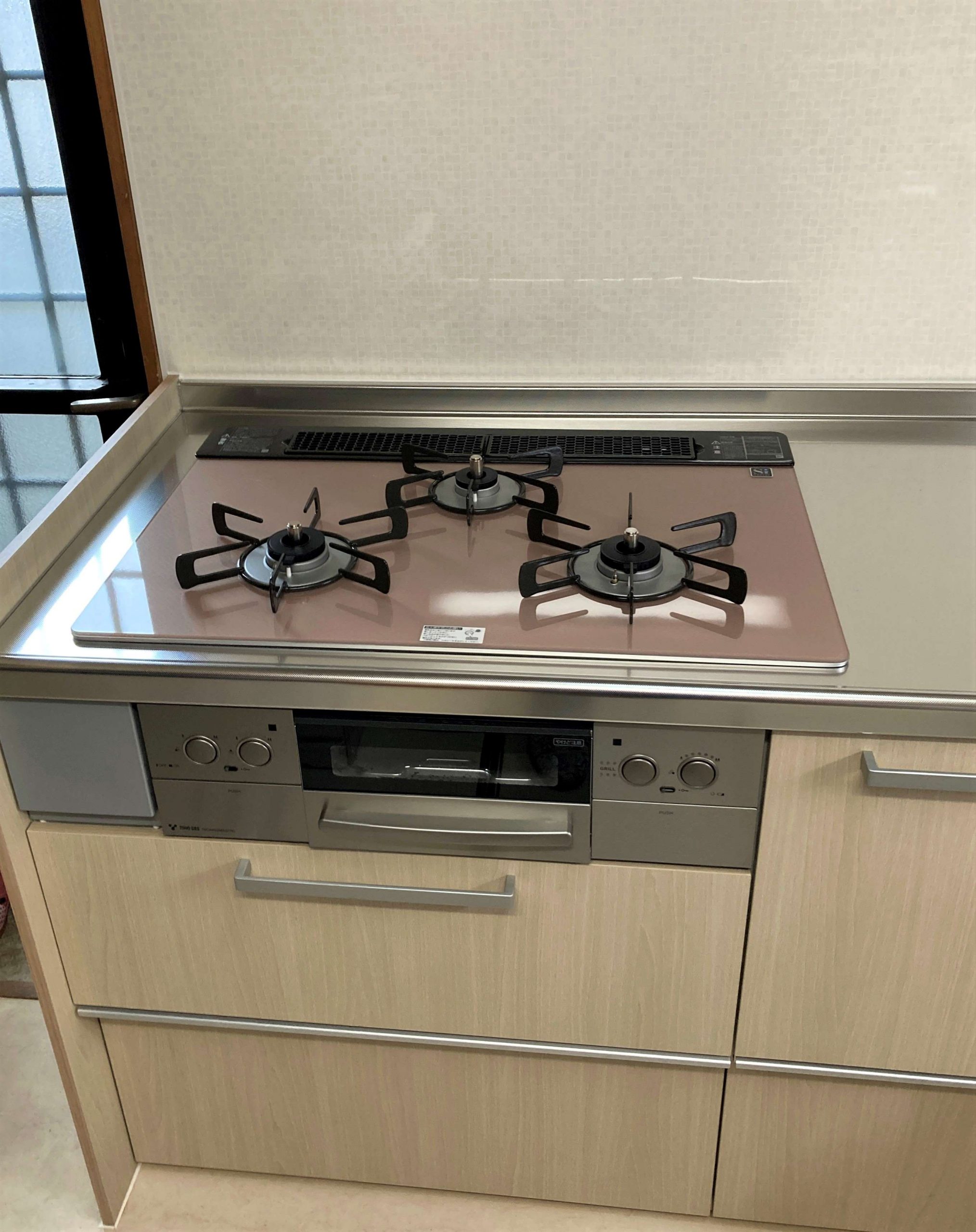 ステンレスがお好きとのことでしたので、システムキッチンの天板がステンレスでお掃除しやすくスタイリッシュなものに取替させていただきました。コンロ下のデッドスペースがなくなり収納力もアップしました!また、コンロもお掃除しやすいガラストップコンロに取替。