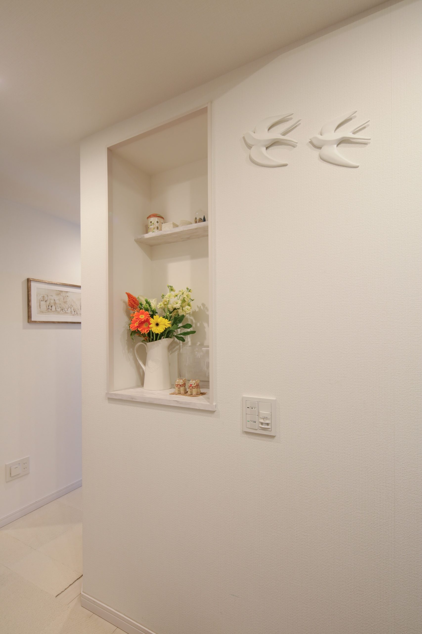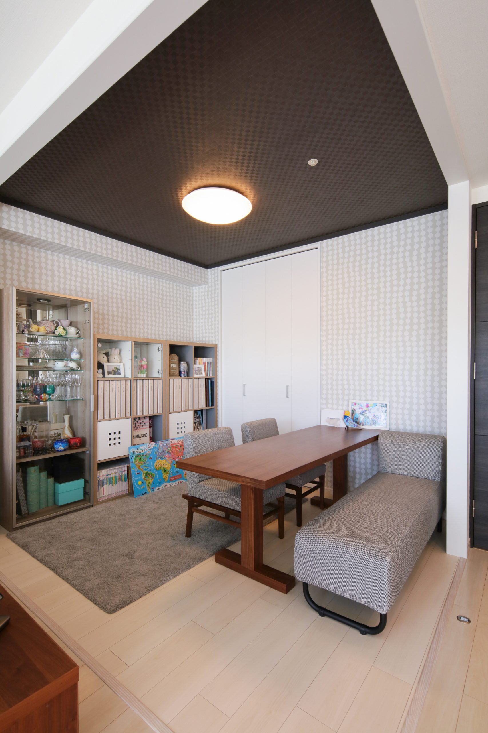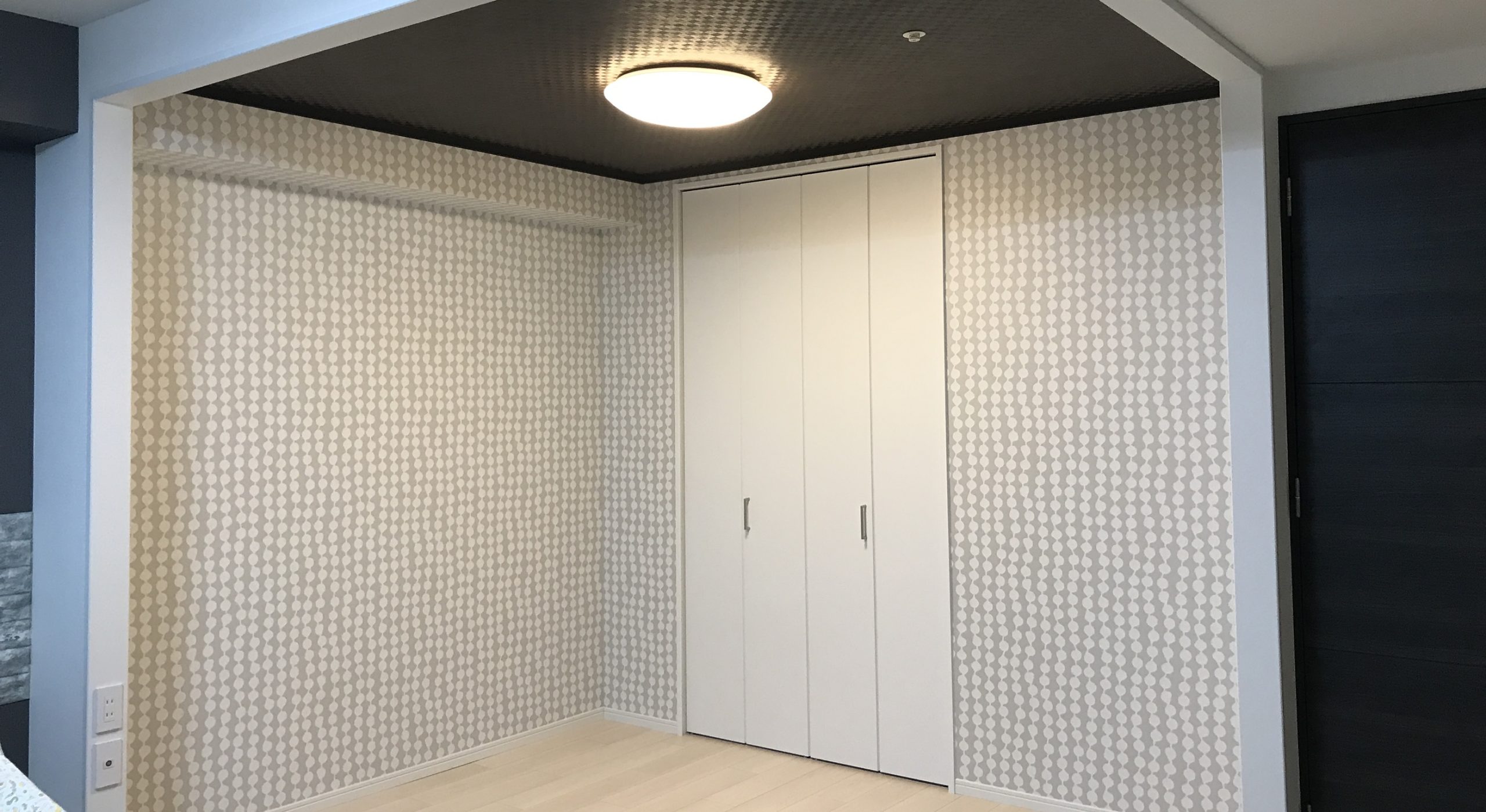 クロスは、北欧風をイメージした幾何学柄に貼替えて、おしゃれであたたかみのあるスペースに生まれ変わりました。