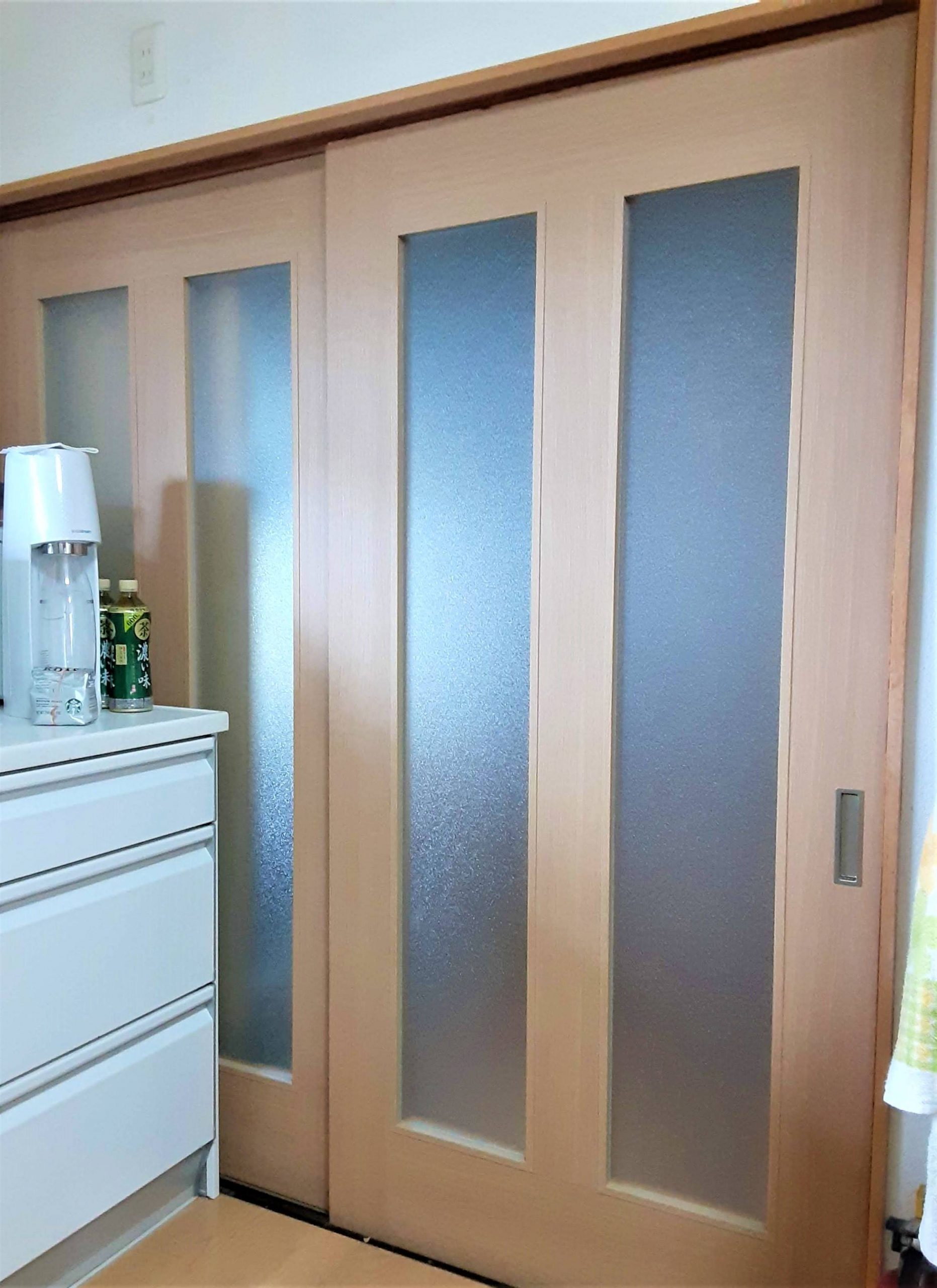 また、建具については新規に製作し、色味もマッチする軽い引き戸をご用意しました。他の引き戸もレール交換とコマ取付をし、どなたでも軽く開けられる様、調整をさせていただきました。