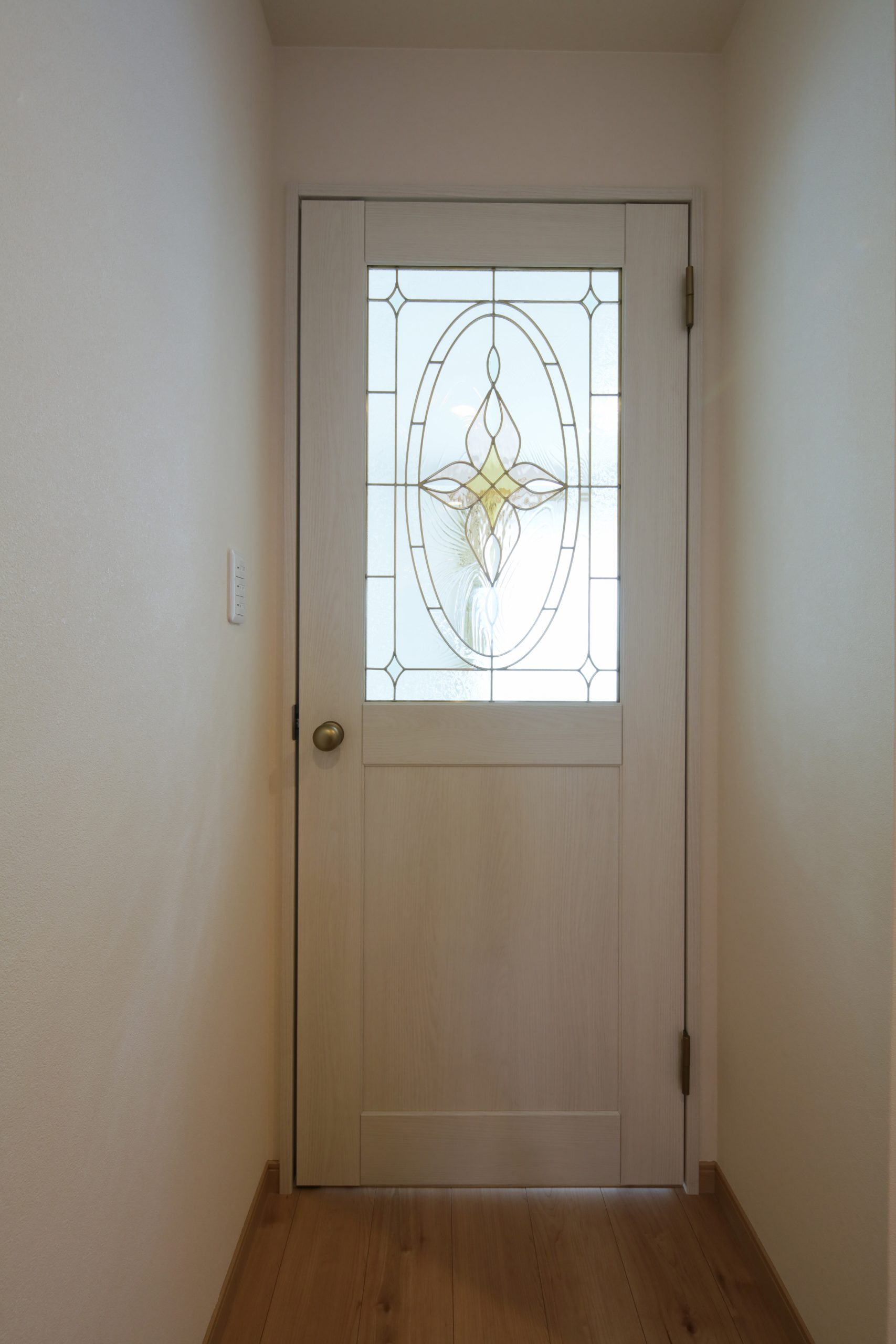 2階の洋室は、扉のステンドグラスが生える真っ白なお部屋に仕上げました。