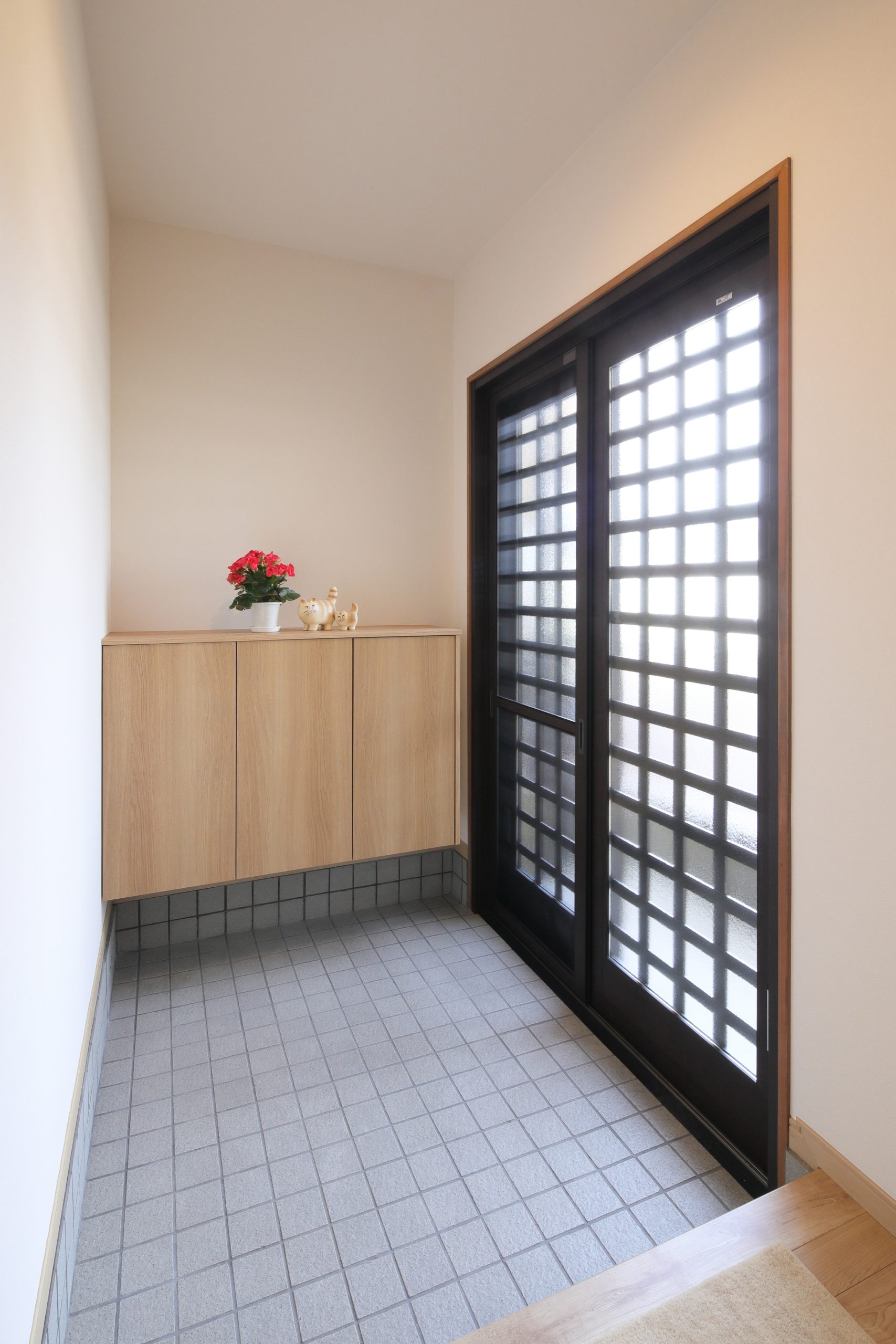 玄関扉と照明を取替えることで、和モダンな雰囲気に一新させていただきました。