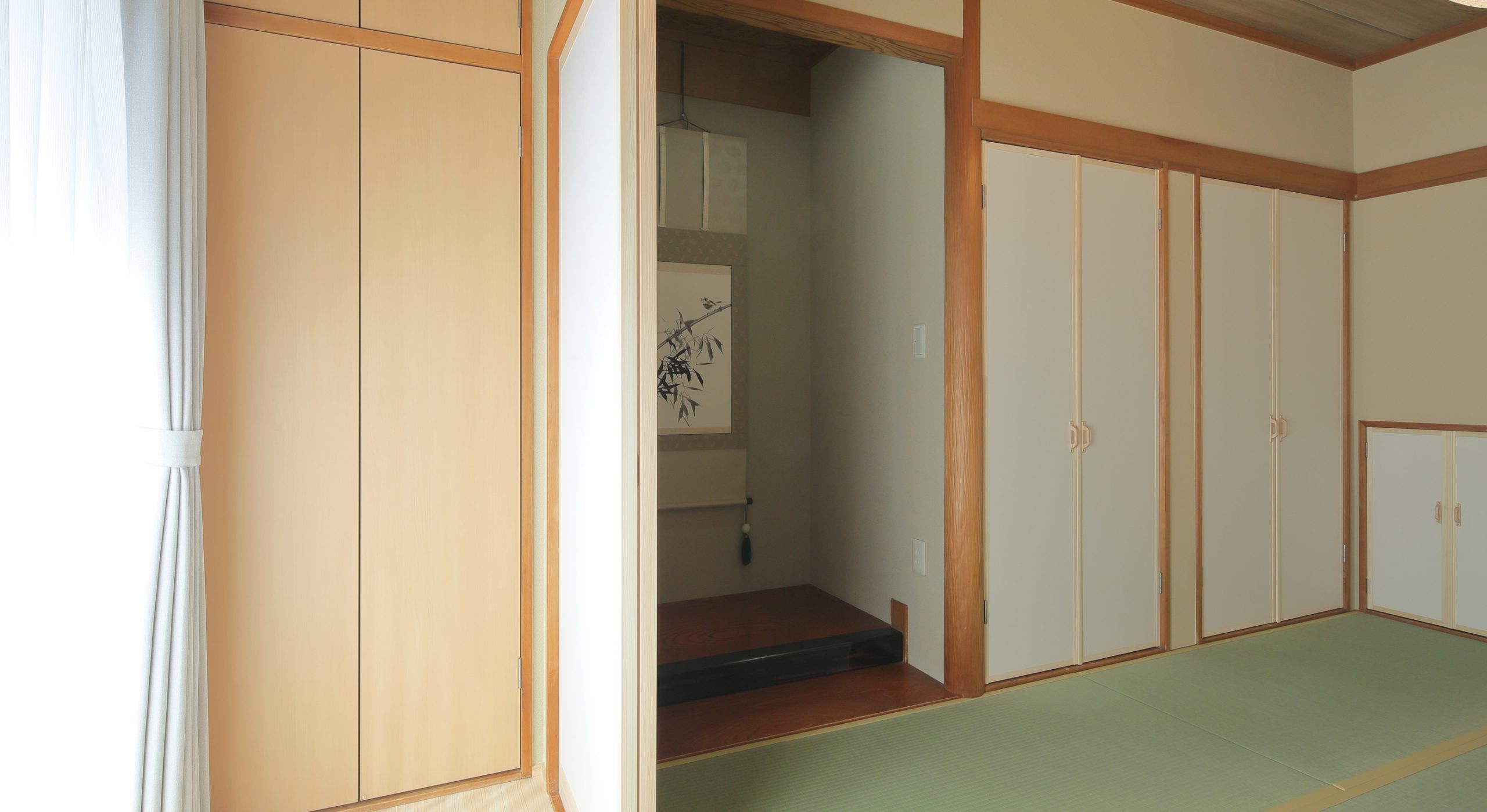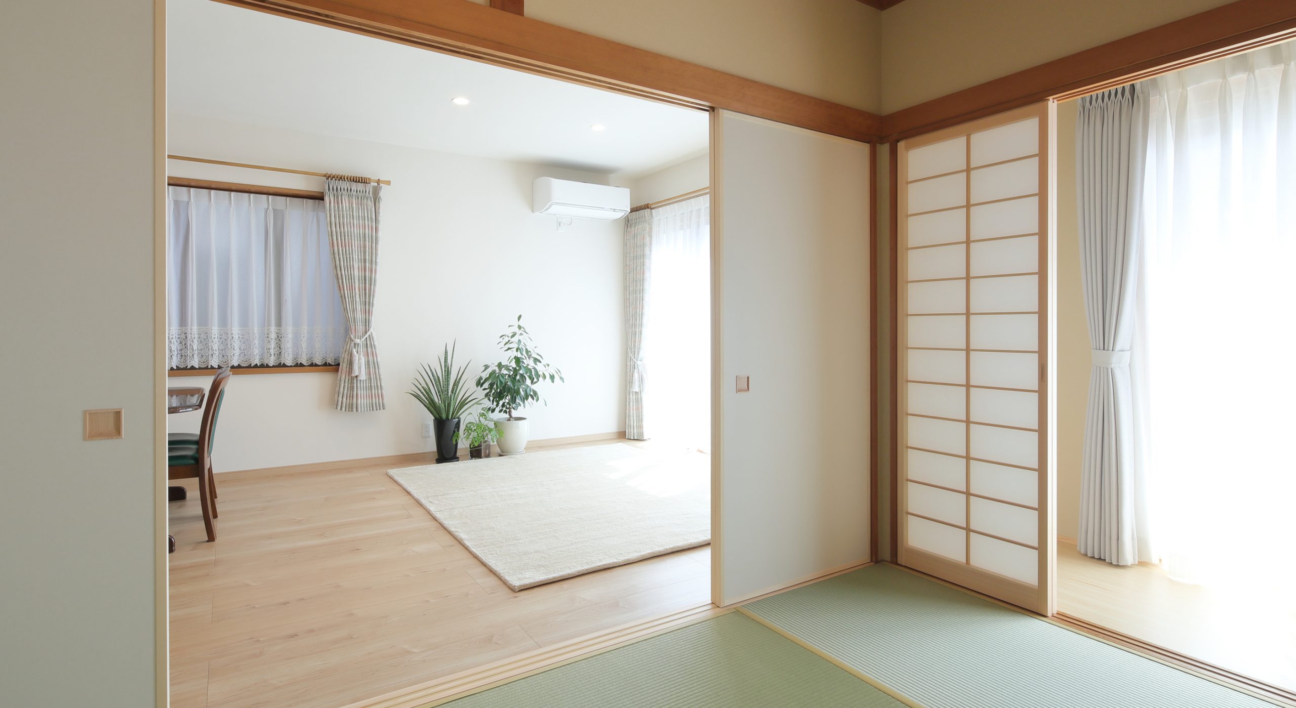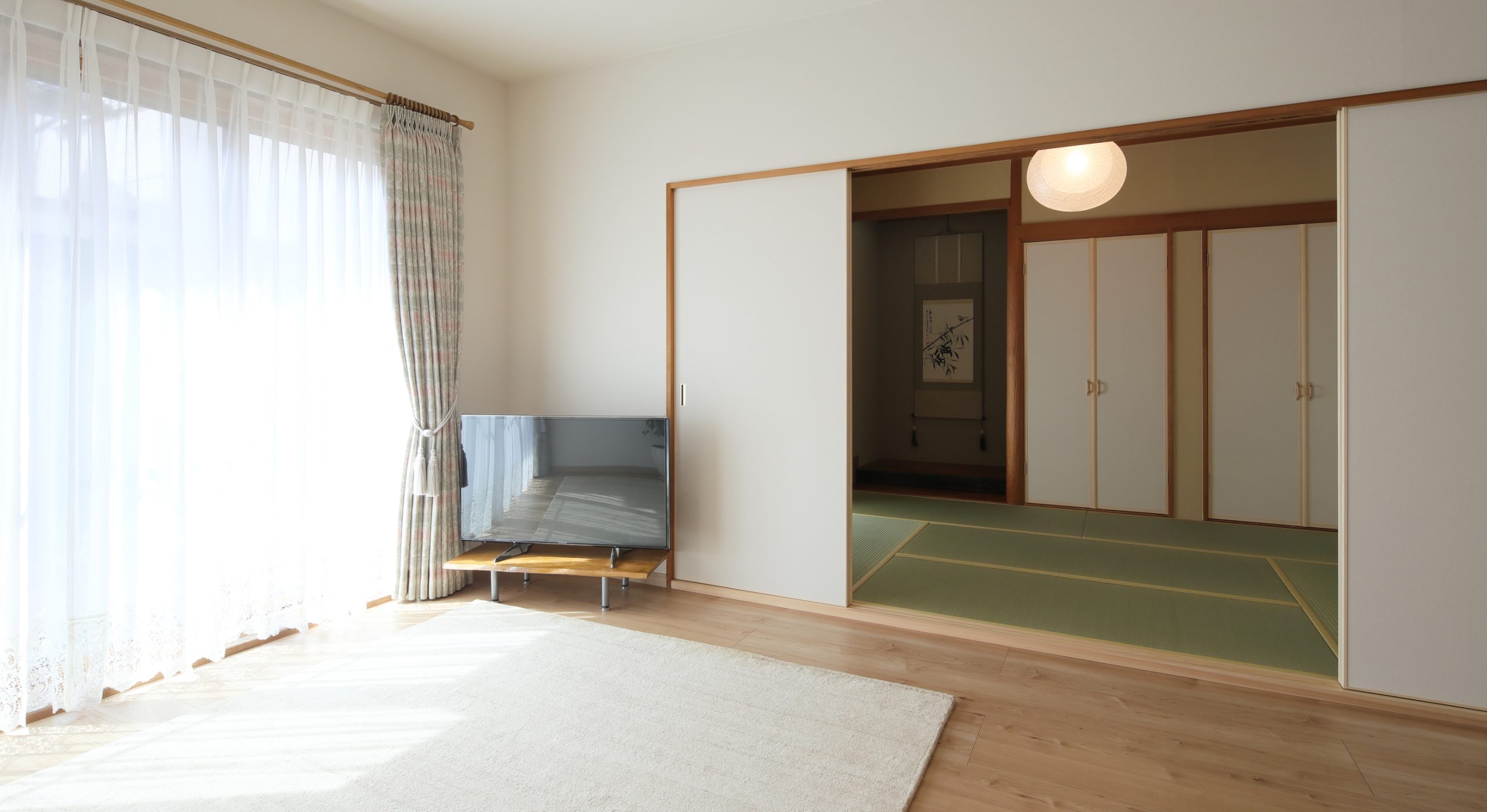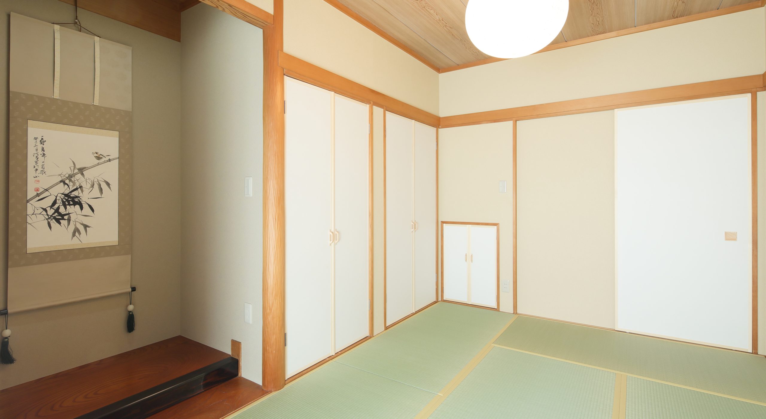 和室は、畳と襖、照明を取替えて、壁面も塗装することで真新しい空間に生まれ変わりました。