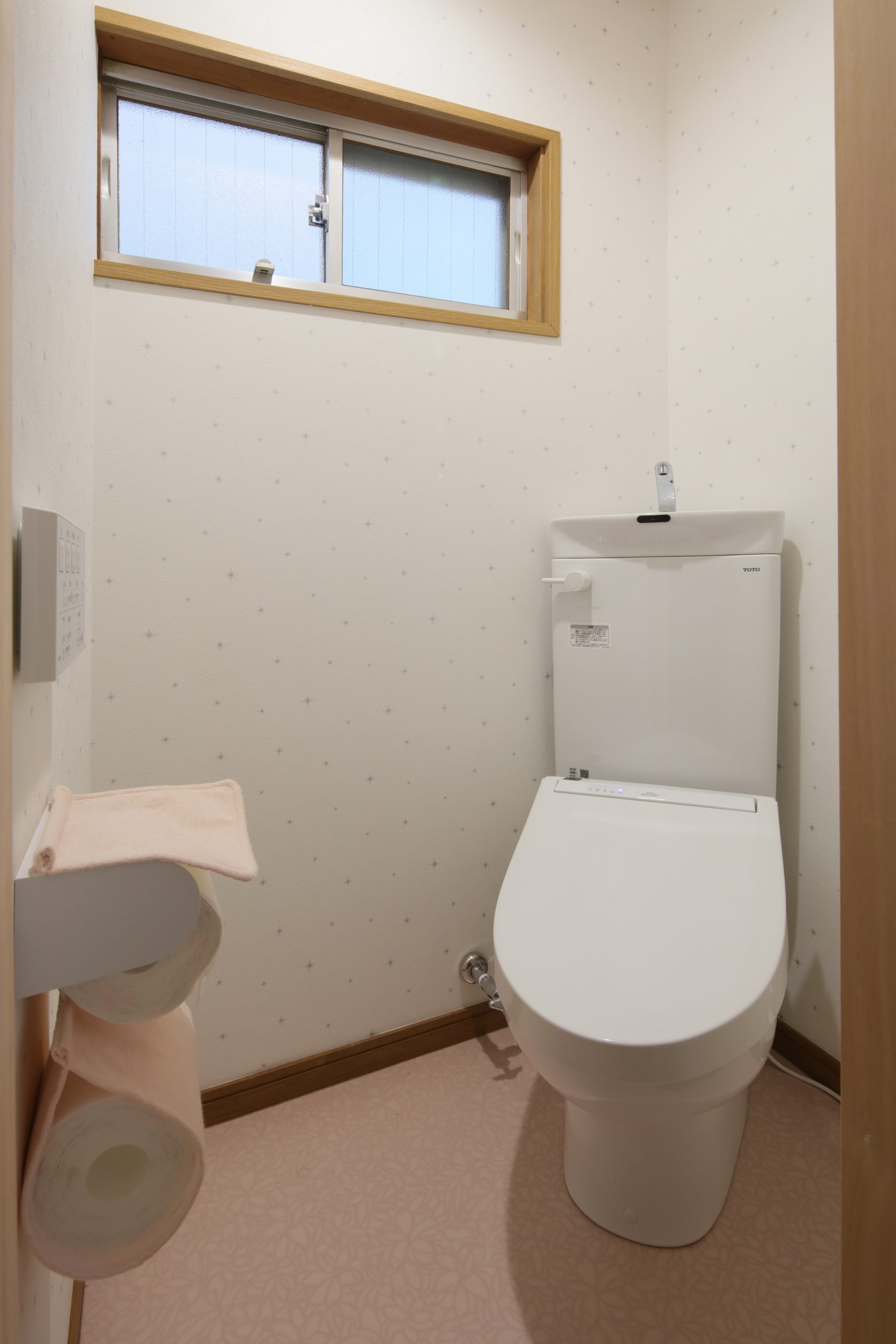 手洗器から洗面化粧台へ取替え、窓縮小、クロス貼替え