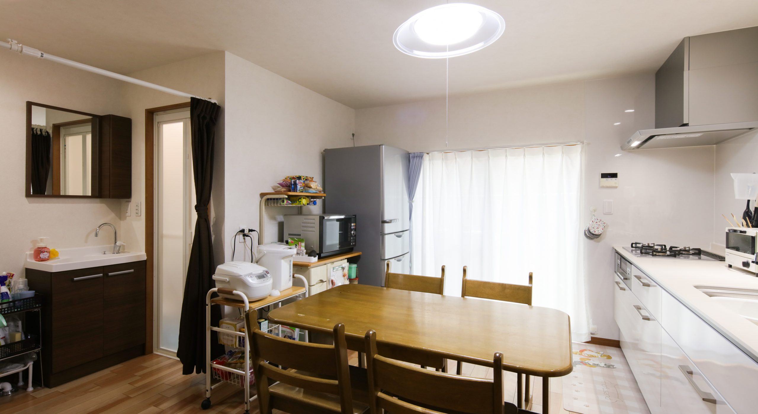キッチンは古くなった設備を一新し、使いやすさとお手入れのしやすさに配慮したプランをご提案。流し台からシステムキッチンへ、換気扇から高機能なレンジフードへと交換し、機能性と清掃性が格段に向上しました。毎日立つ場所だからこそ、快適に過ごせるよう床・壁・建具も新しくし、明るく統一感のある空間に仕上げています。