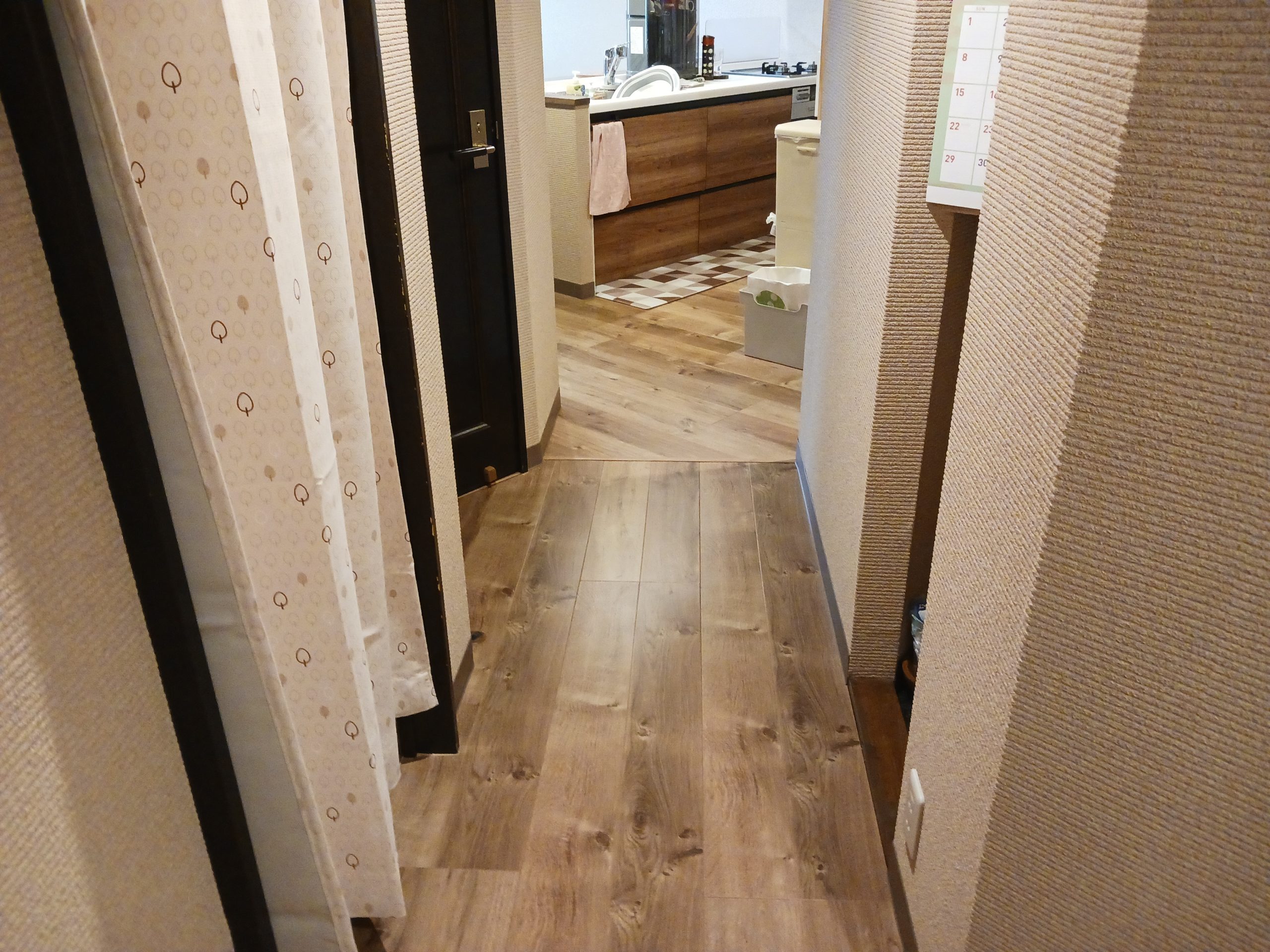 張替えをご希望だったフロアは、新しいキッチンと既存フロアの色味に調和するよう選定。