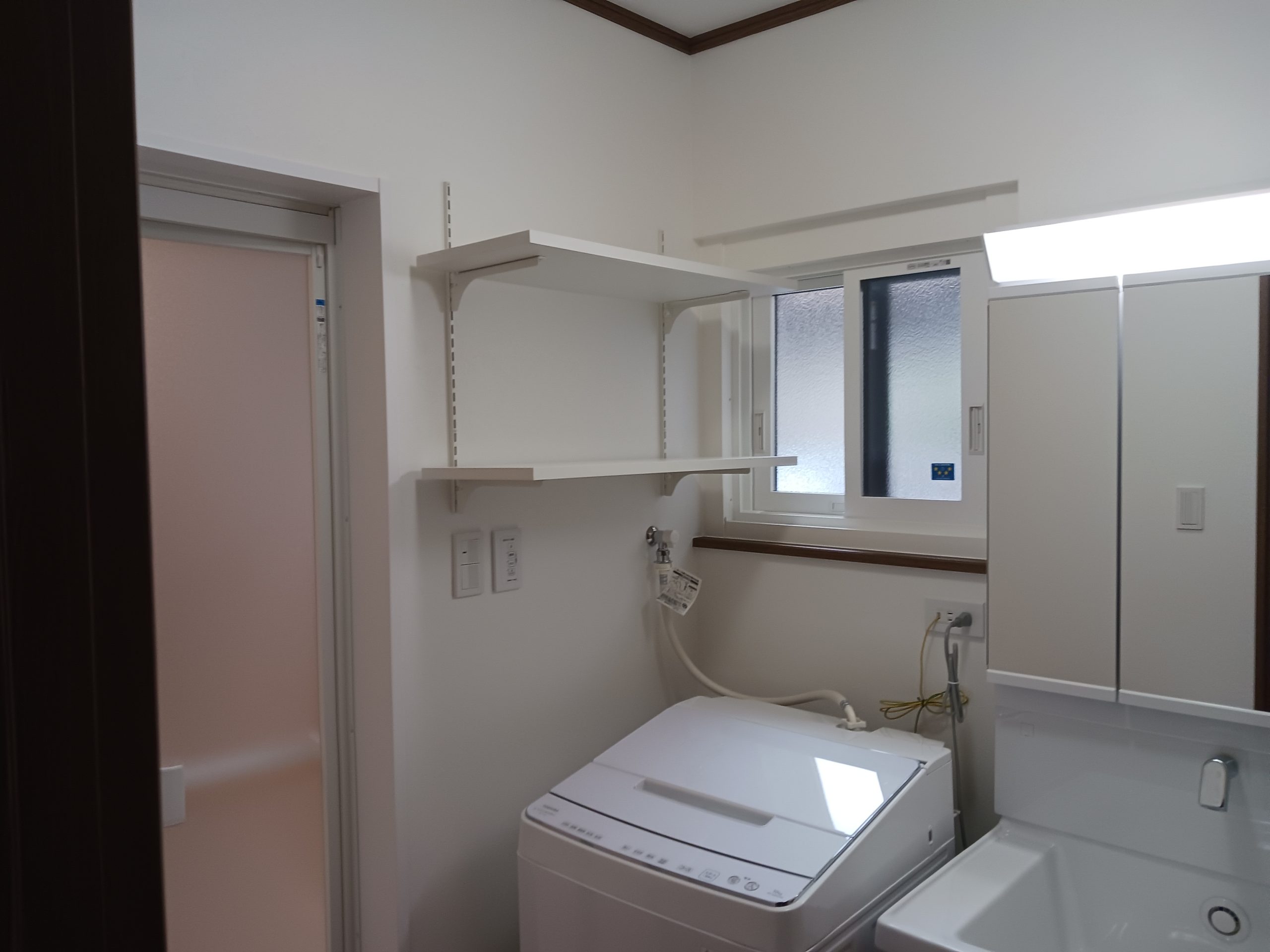 洗面化粧台取替え、トールキャビネット取付け、ドライヤーハンガー設置