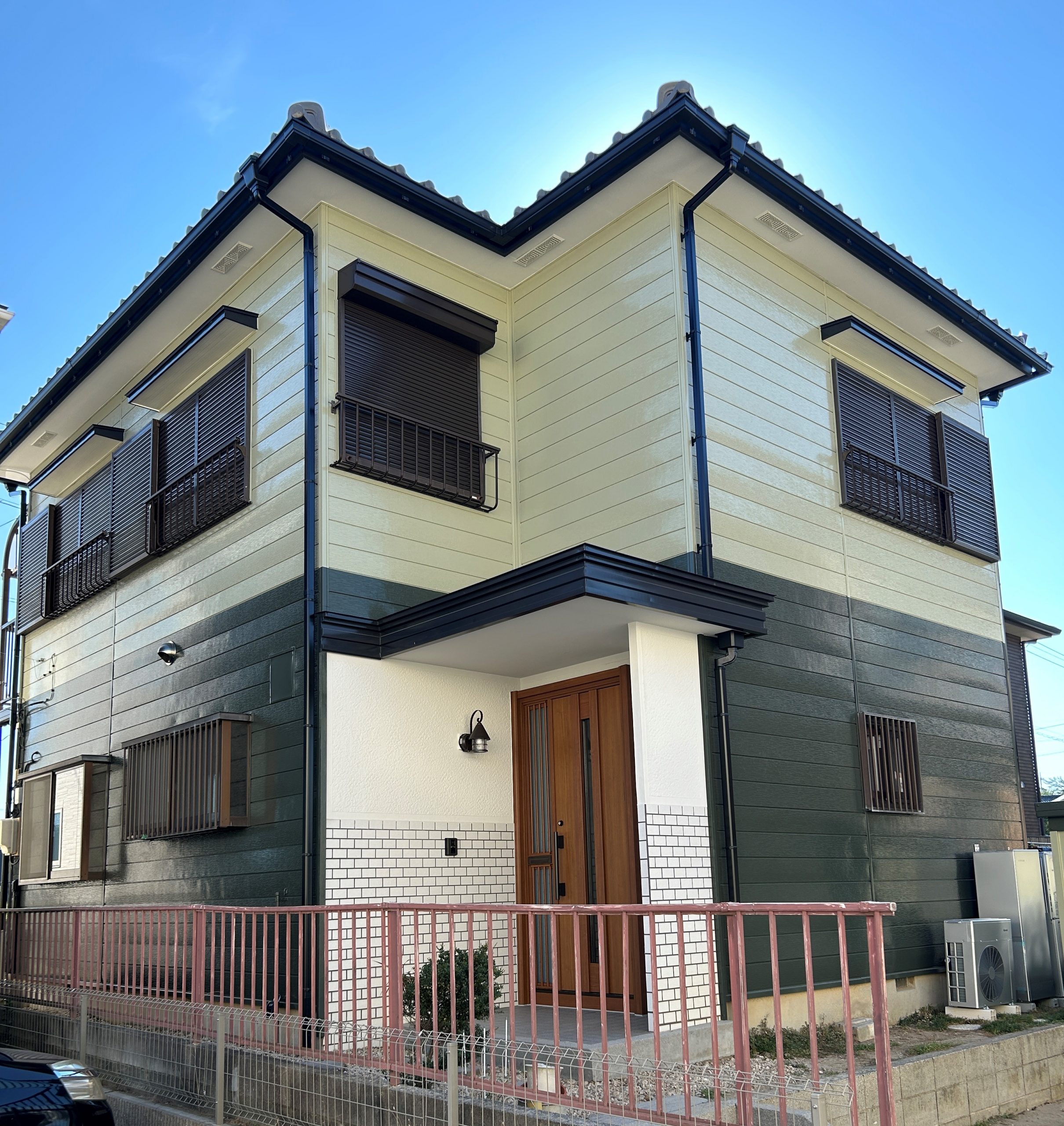 塗装して明るくなった外壁に合うように、玄関ドアもお取替えさせていただきました。