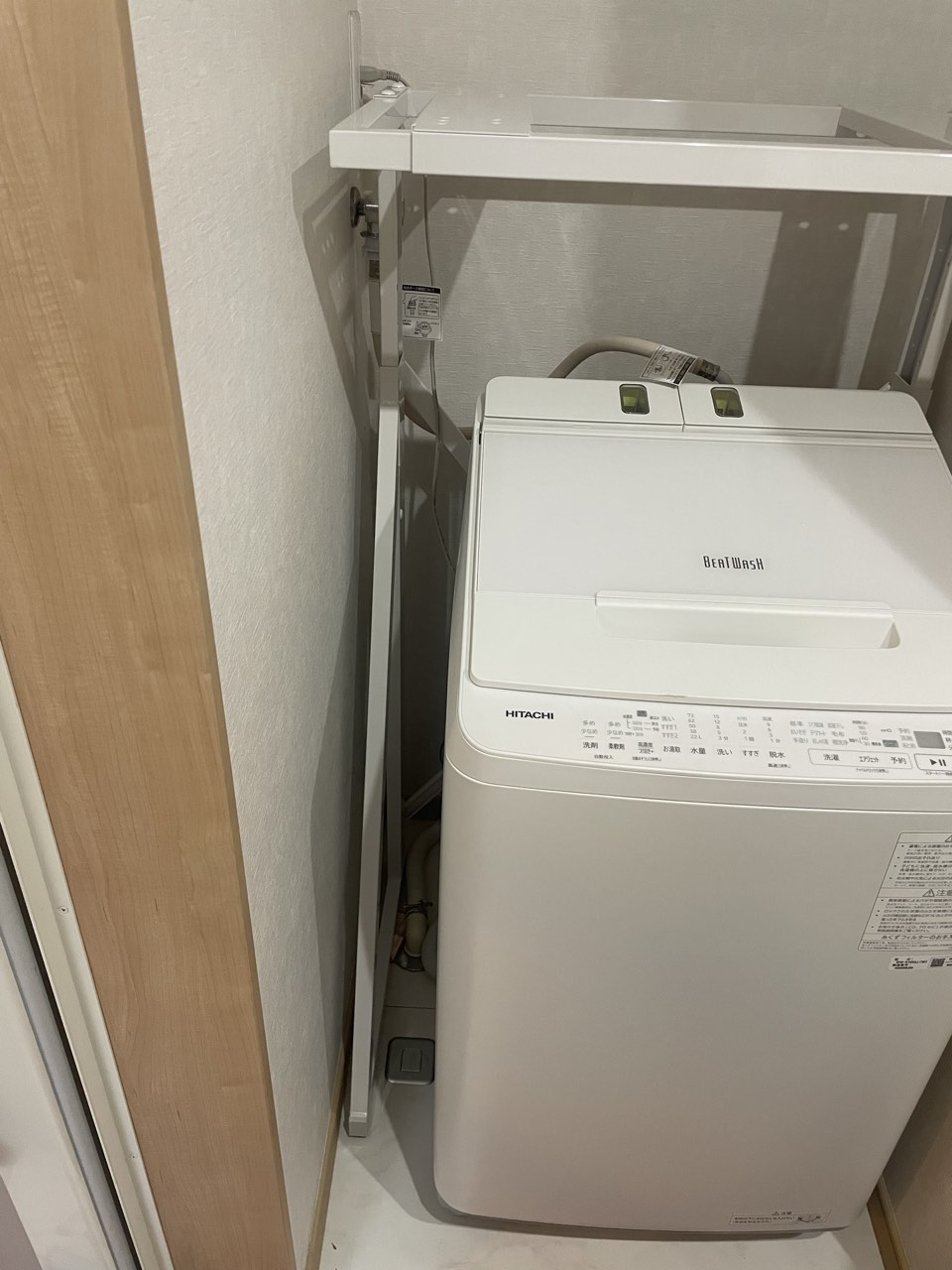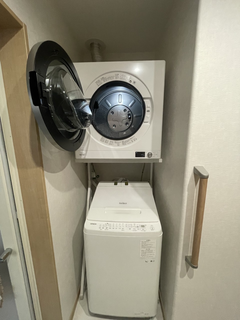 洗濯機のスペースは両袖壁で限られておりましたが、衣類乾燥機をきれいに収めることで見た目をスッキリ。