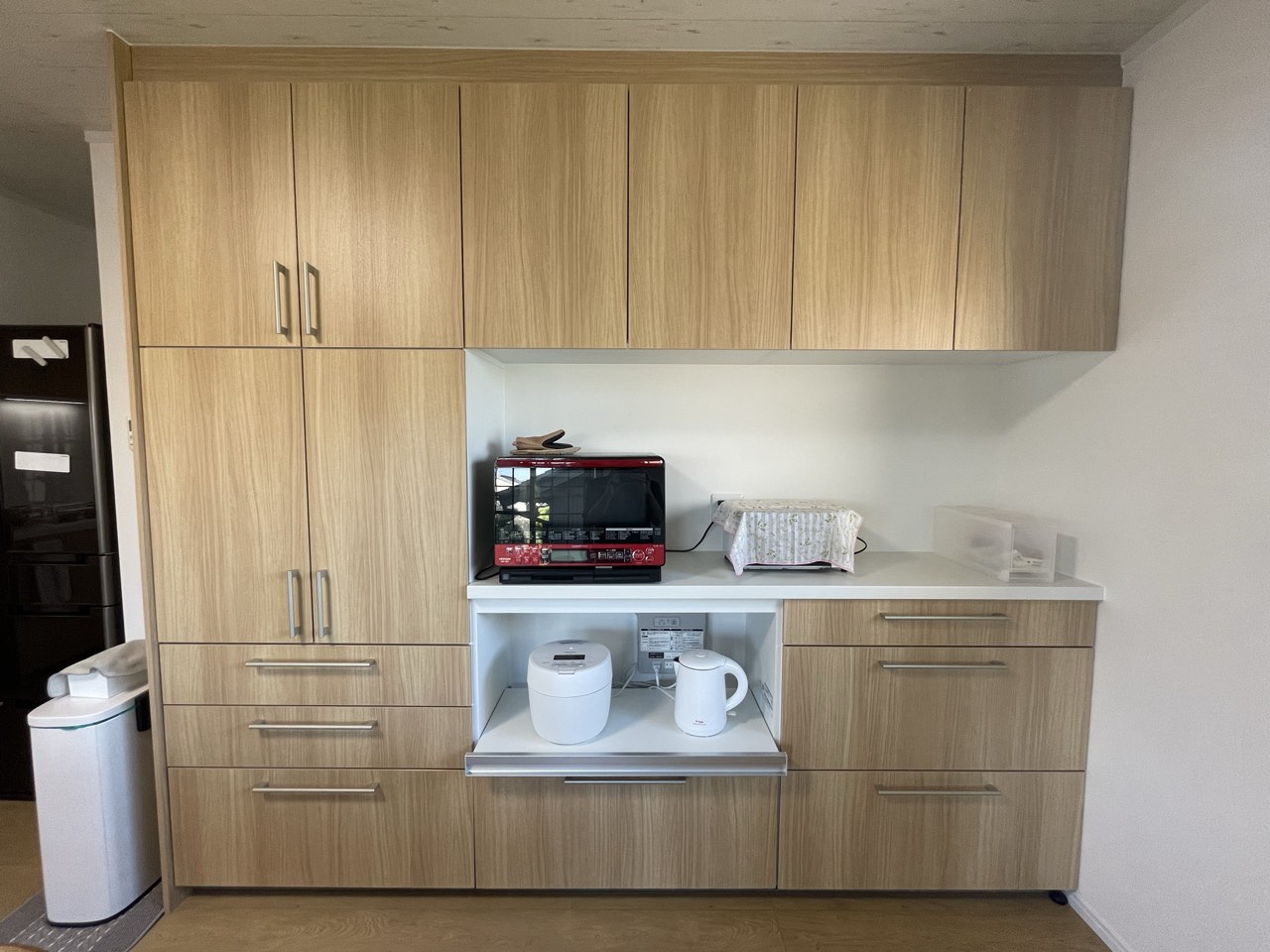 ダイニングの壁面には、大容量のトールキャビネットを設置して収納力も抜群。