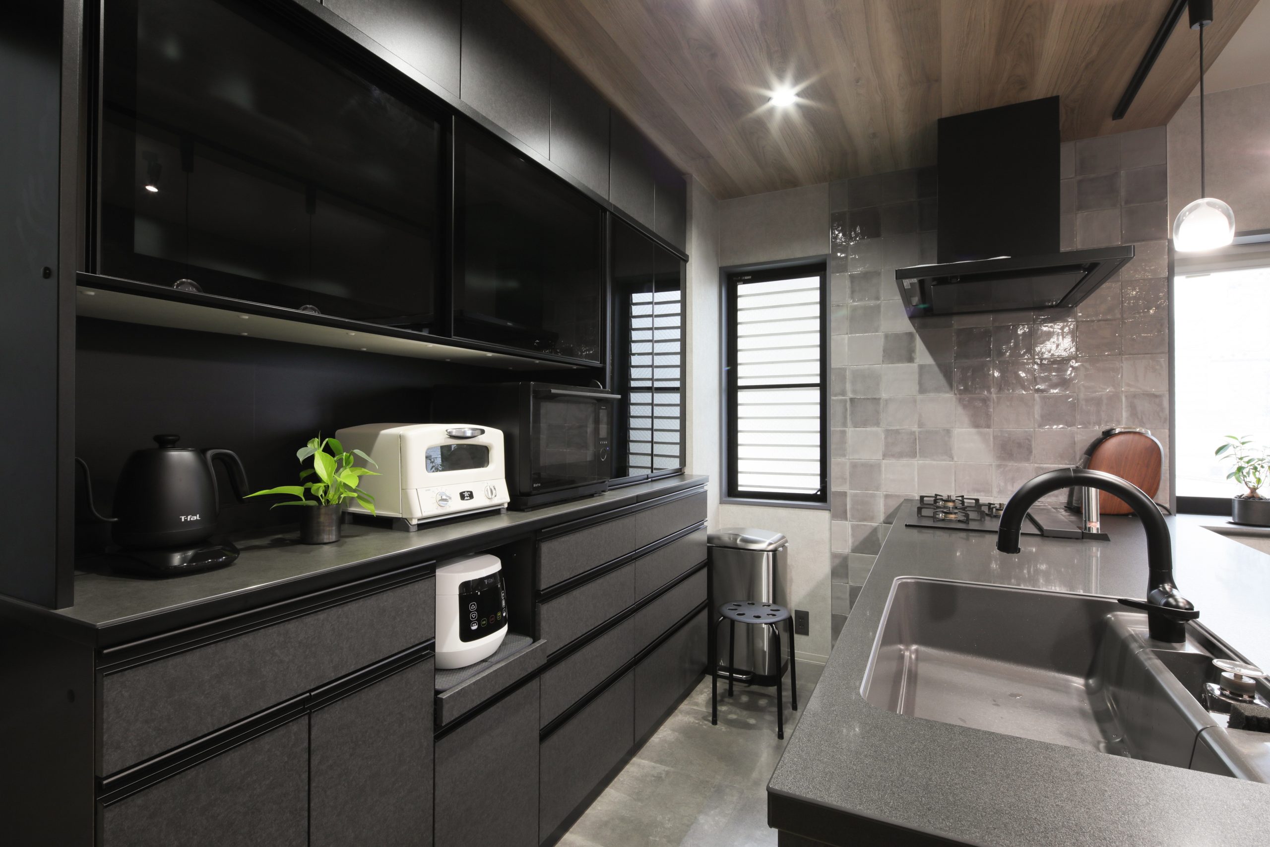 壁にはアクセントとしてエコカラットを取り入れ、気になるにおいや湿気対策に。