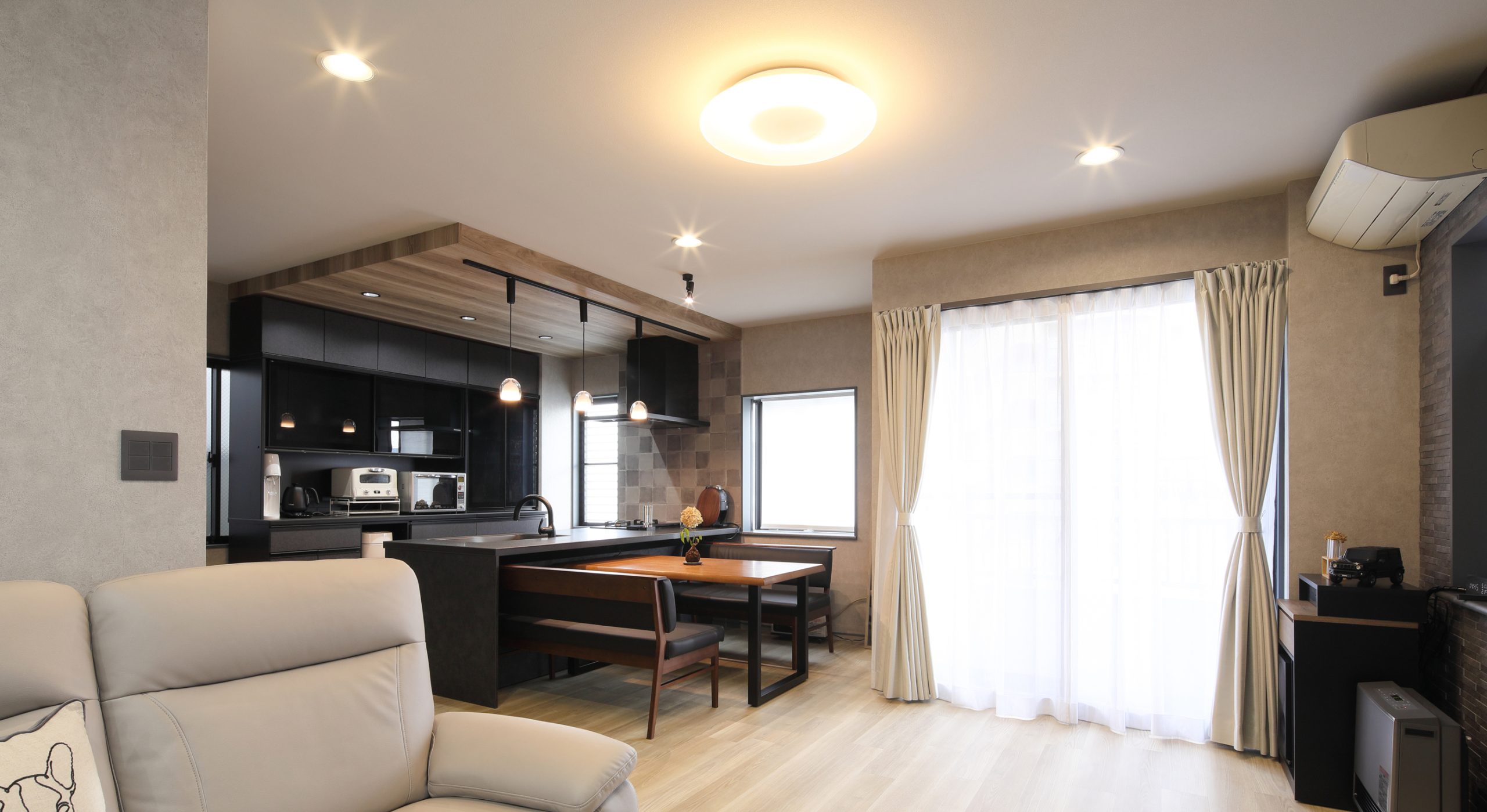 スタイリッシュで開放的なLDK 調光・調色ライトが昼夜異なる空間を演出