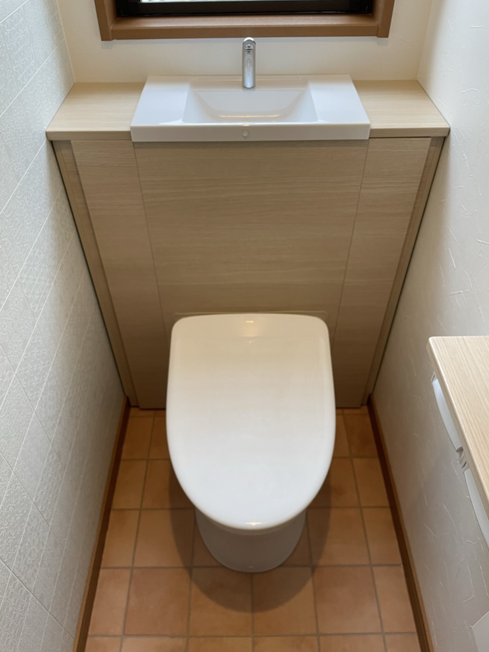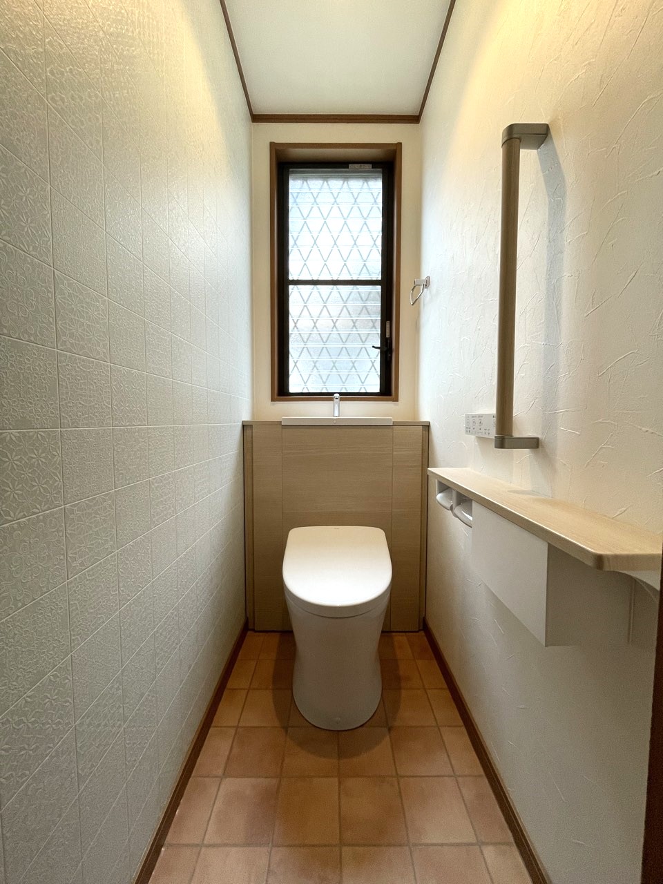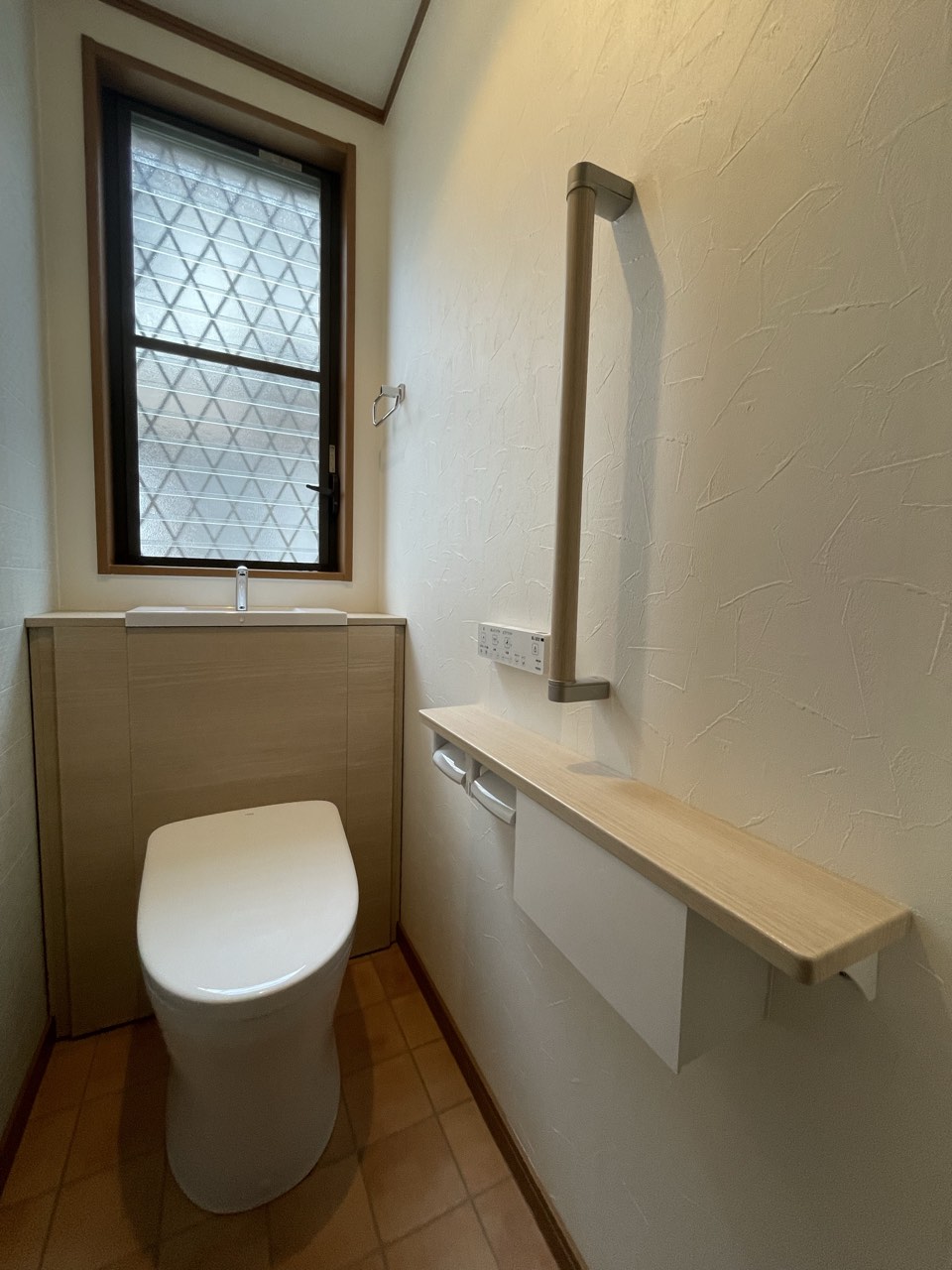 お客さまも以前から気になっていた商品で、TOTOのキャビネット付きトイレ「レストパル」を採用させていただきました。