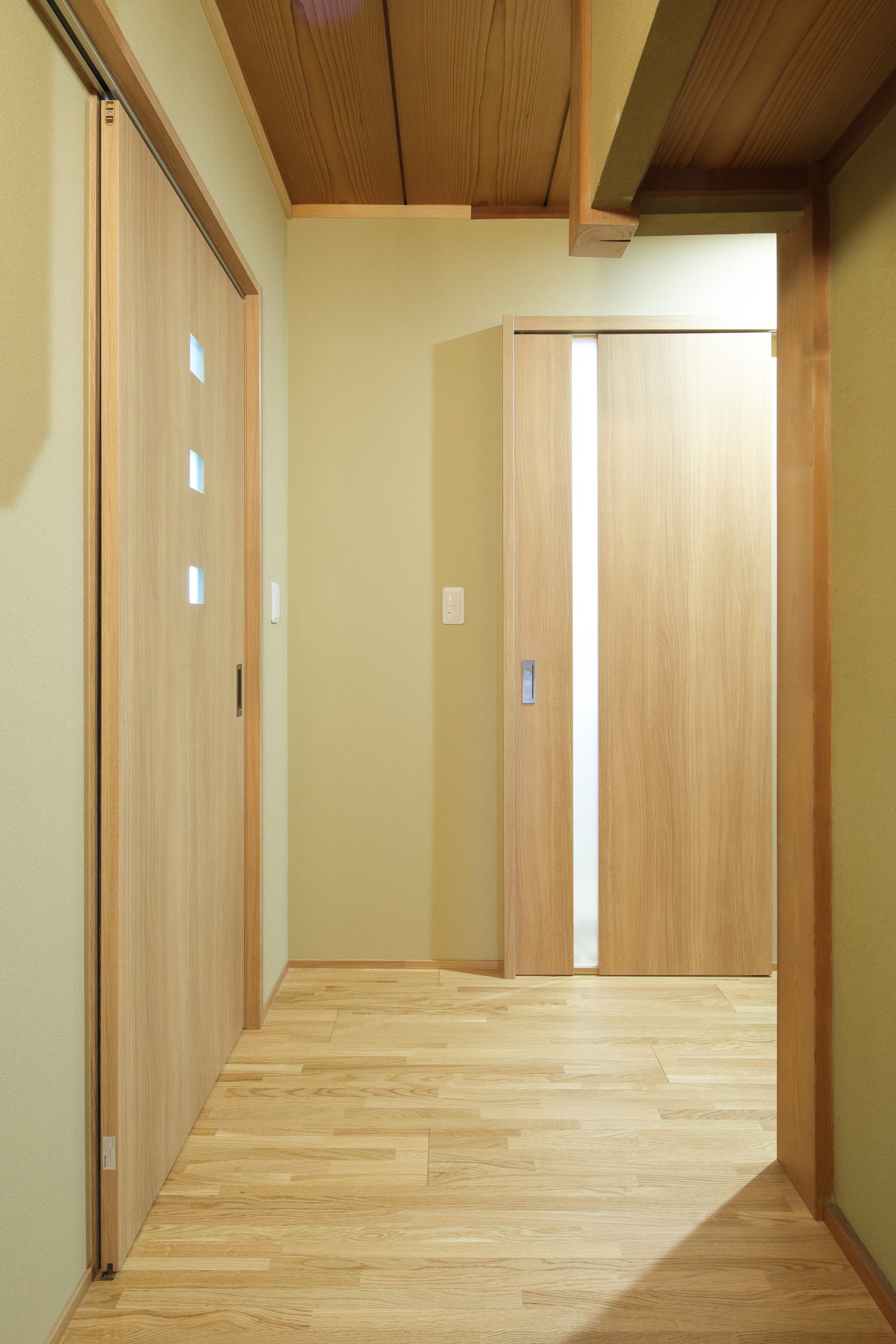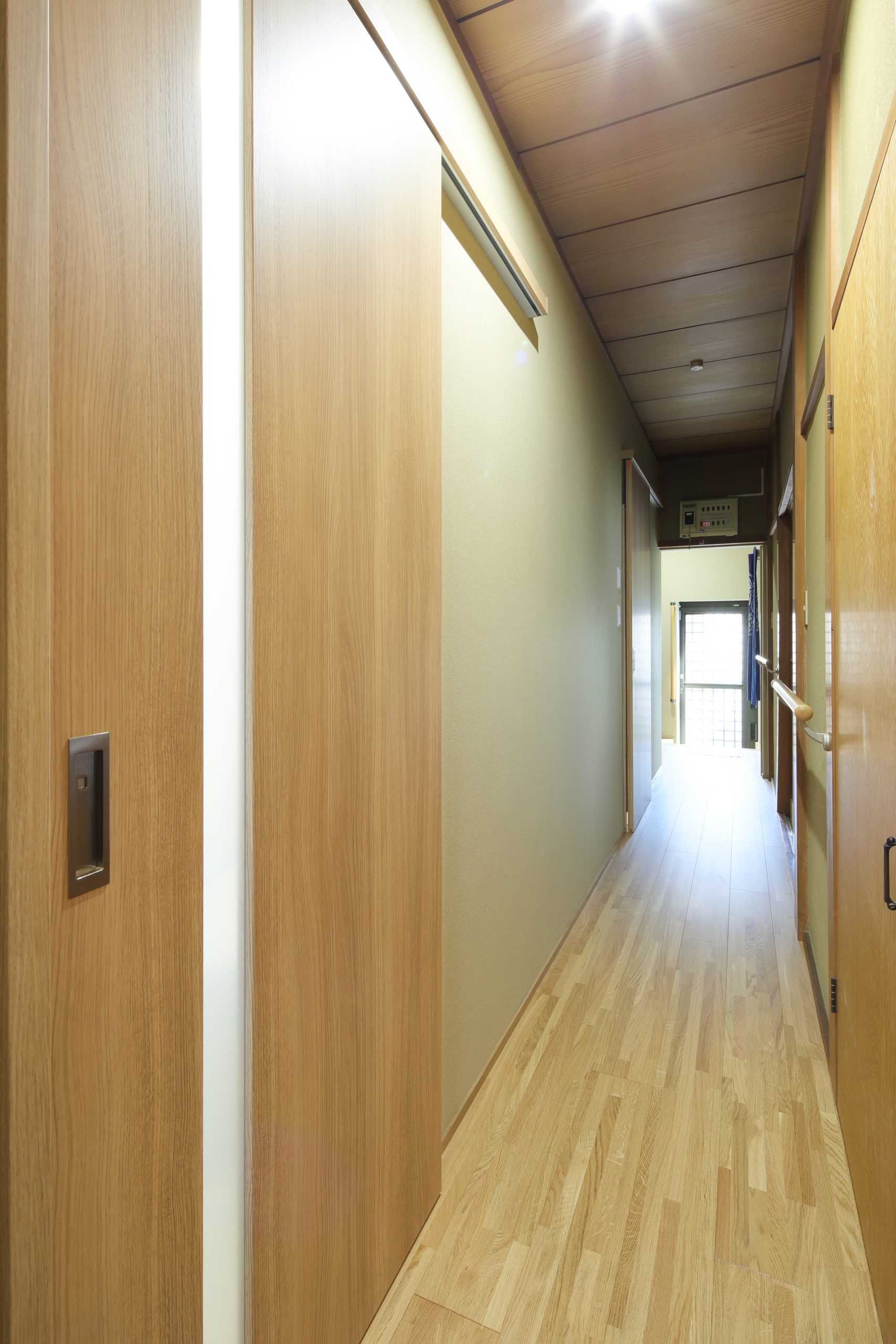床材は「現状の雰囲気を残したい」とのご希望に沿い、建材イベントで見つけた商品をご提案。玄関ホール・広縁・廊下には、こだわりの床材と巾木を使用し、壁に合わせたクロスで細部まで統一感のある空間に仕上げました。