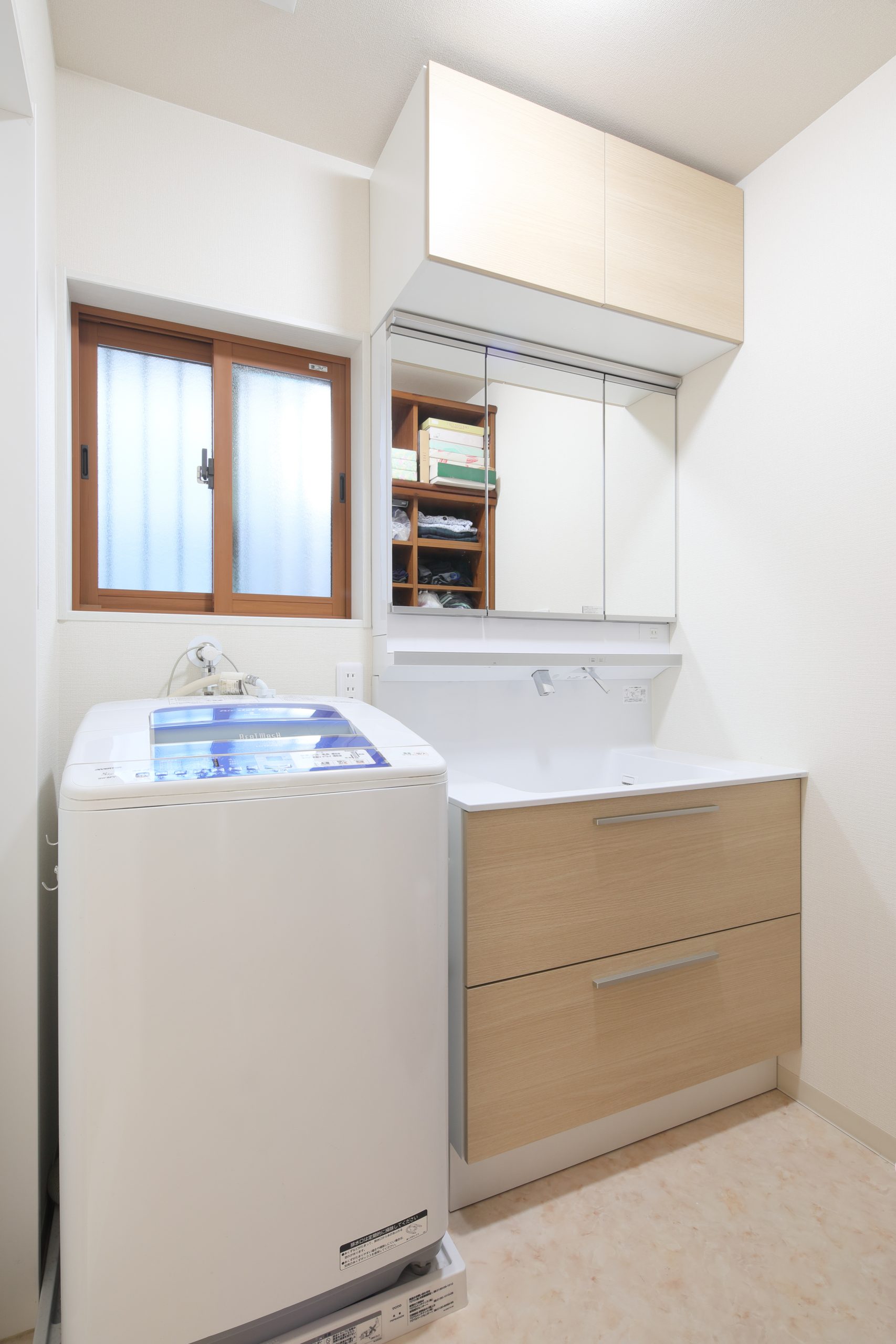 洗面化粧台取替え、収納棚設置
