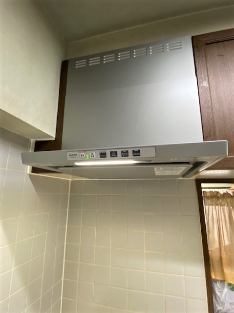 レンジフードが経年劣化しているためお取替えのご依頼をいただきました。また、掃除が大変なのでお手入れが簡単なタイプにしたいとのご希望でした。