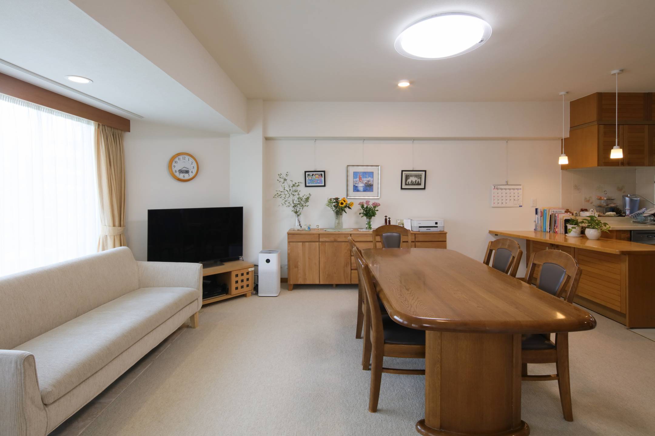 建具はLIXILショールームで実物をご確認いただき、カーペットは複数のサンプルからお好みに合うものを選定。当初ご希望だったフローリングへの変更は、今回はご予算に合わせてカーペットの貼替えで対応しました。