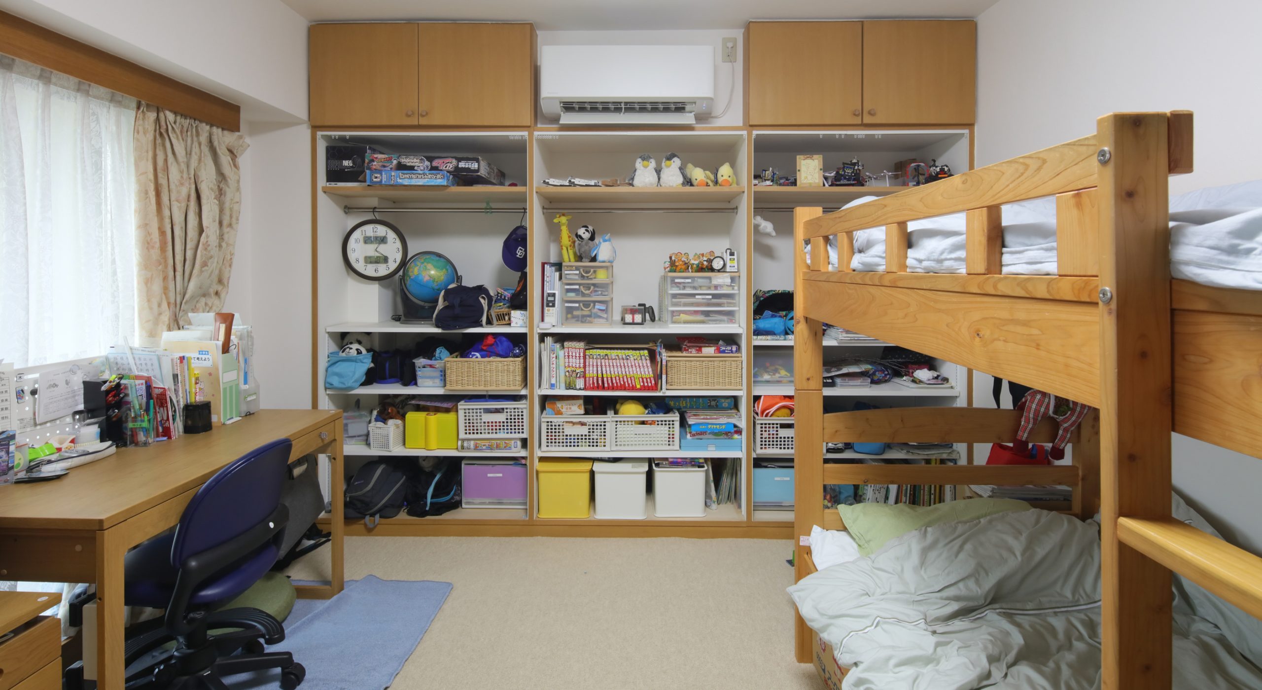 お子さまの新しい部屋にはクロスを貼替え、クローゼットの扉は外してオープン収納に。主寝室側もクローゼットをオープンにし、空間にゆとりを持たせました。