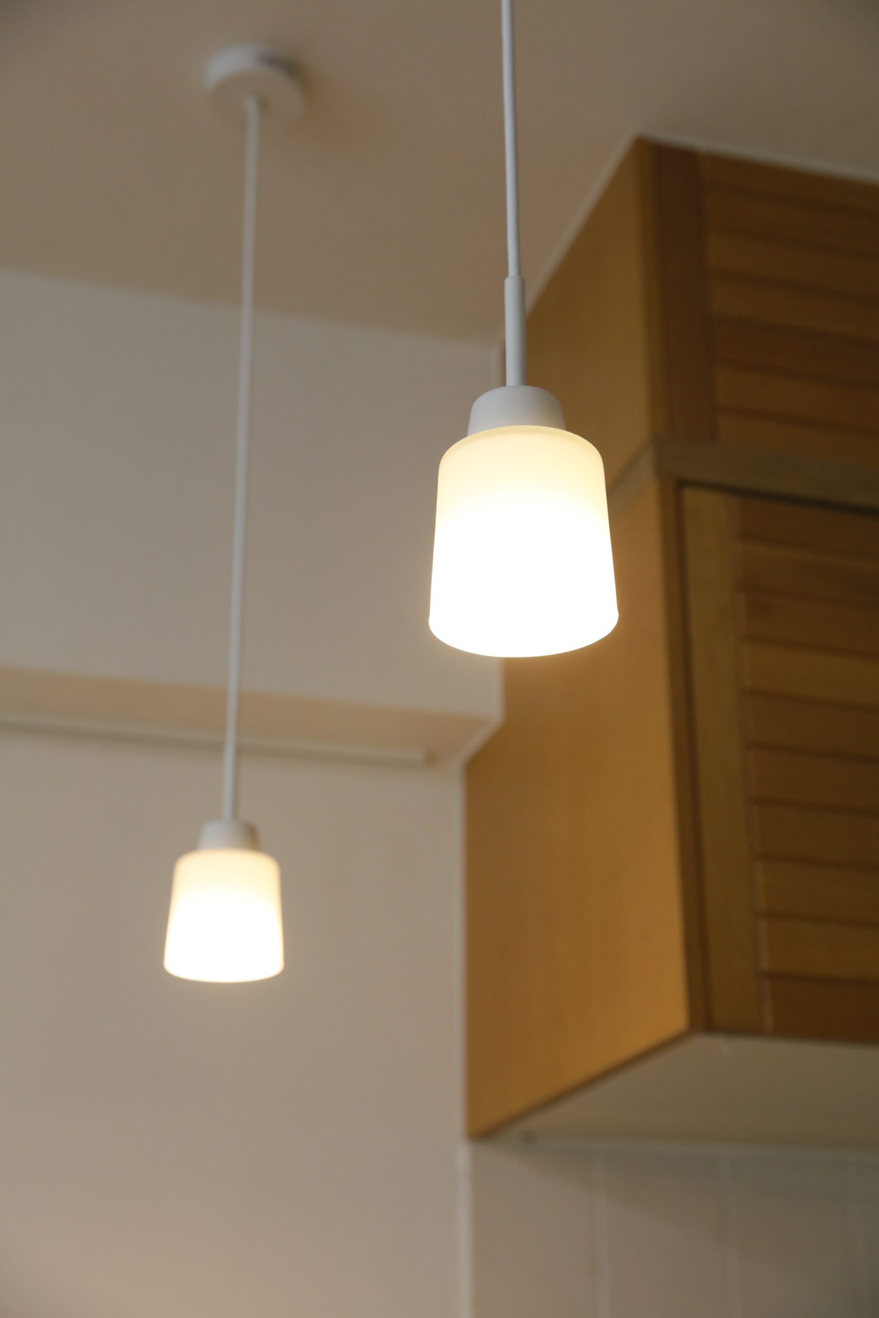 キッチンカウンター上の照明は、空間になじむコンパクトなデザインをご提案。リビング窓際にはピクチャーレールを設置し、観葉植物や季節の飾りが楽しめる空間に仕上げています。