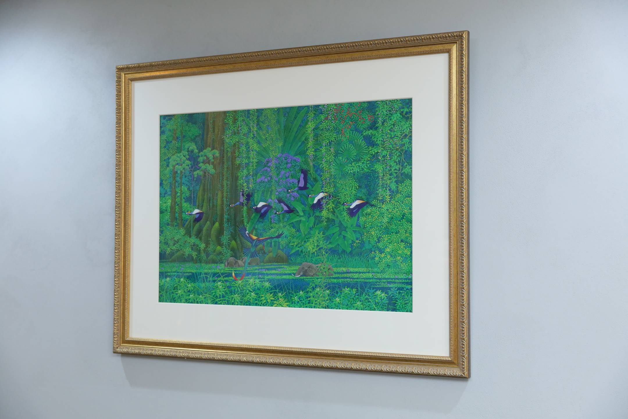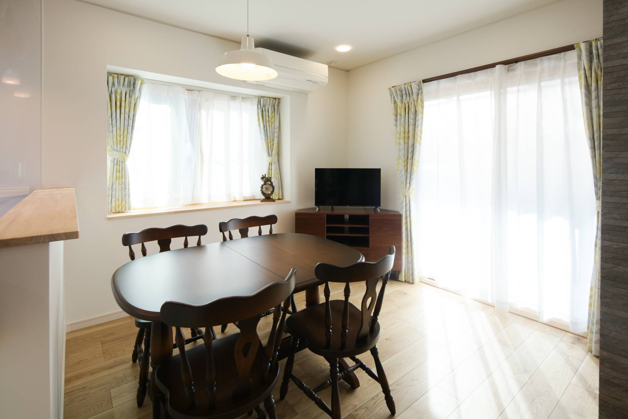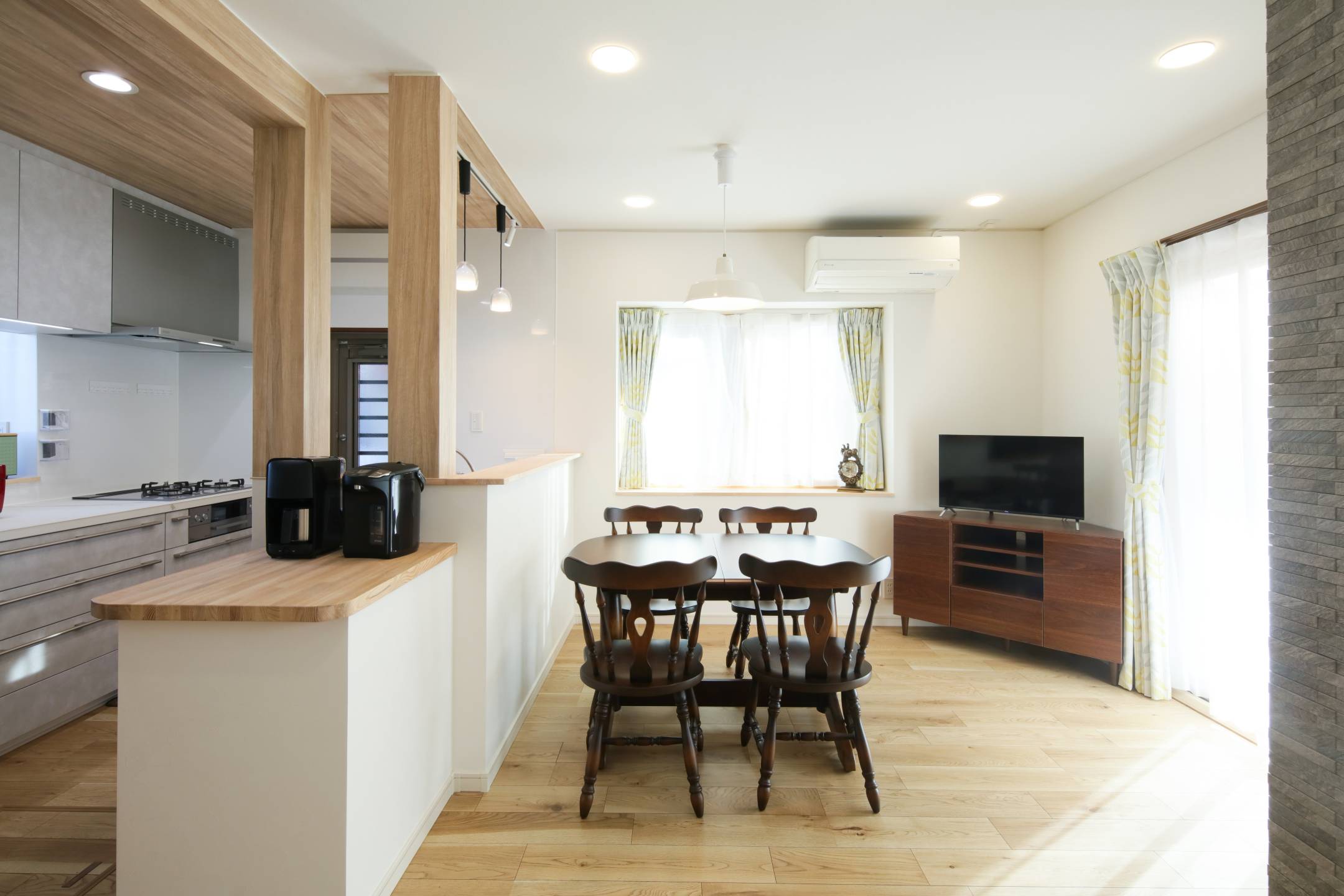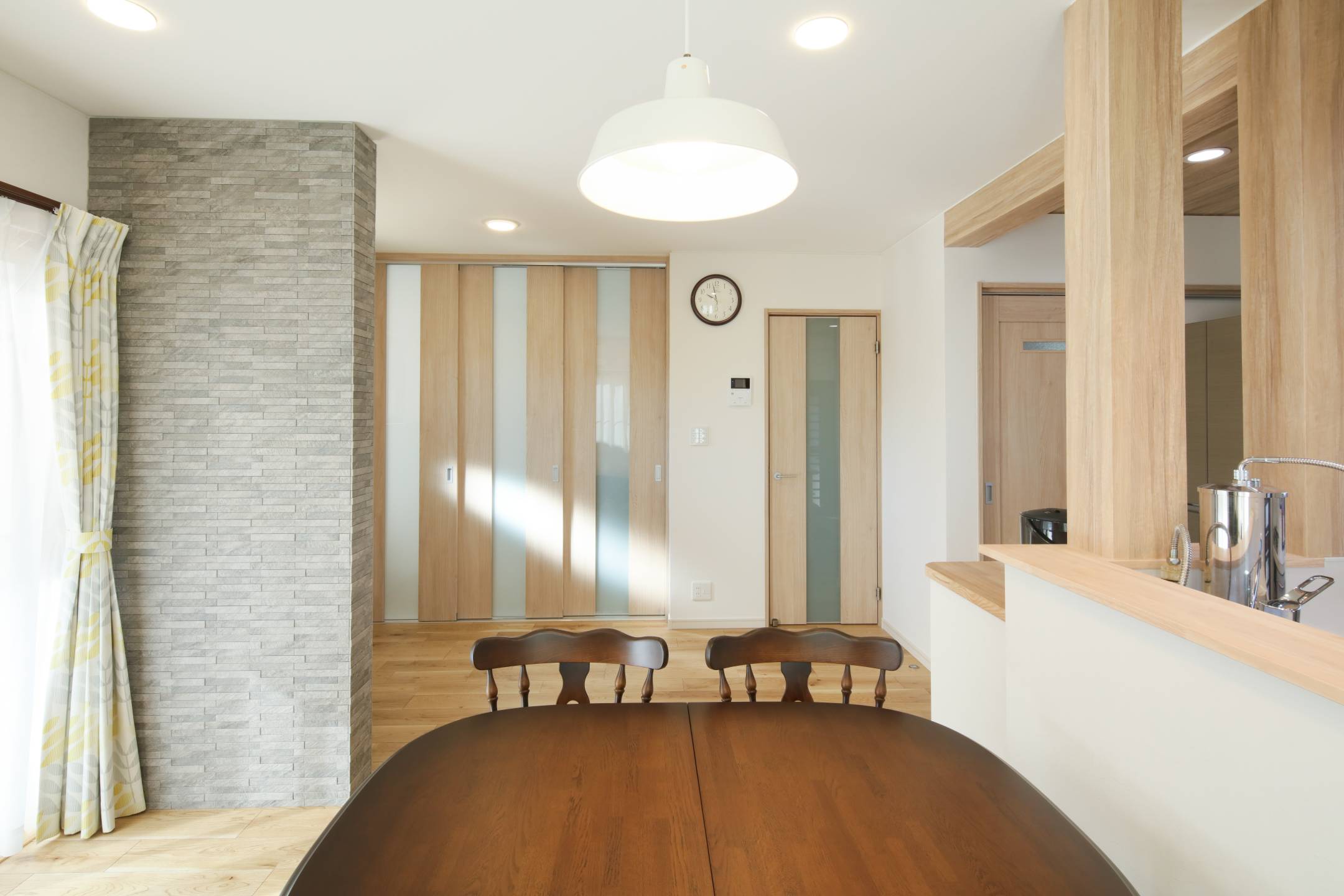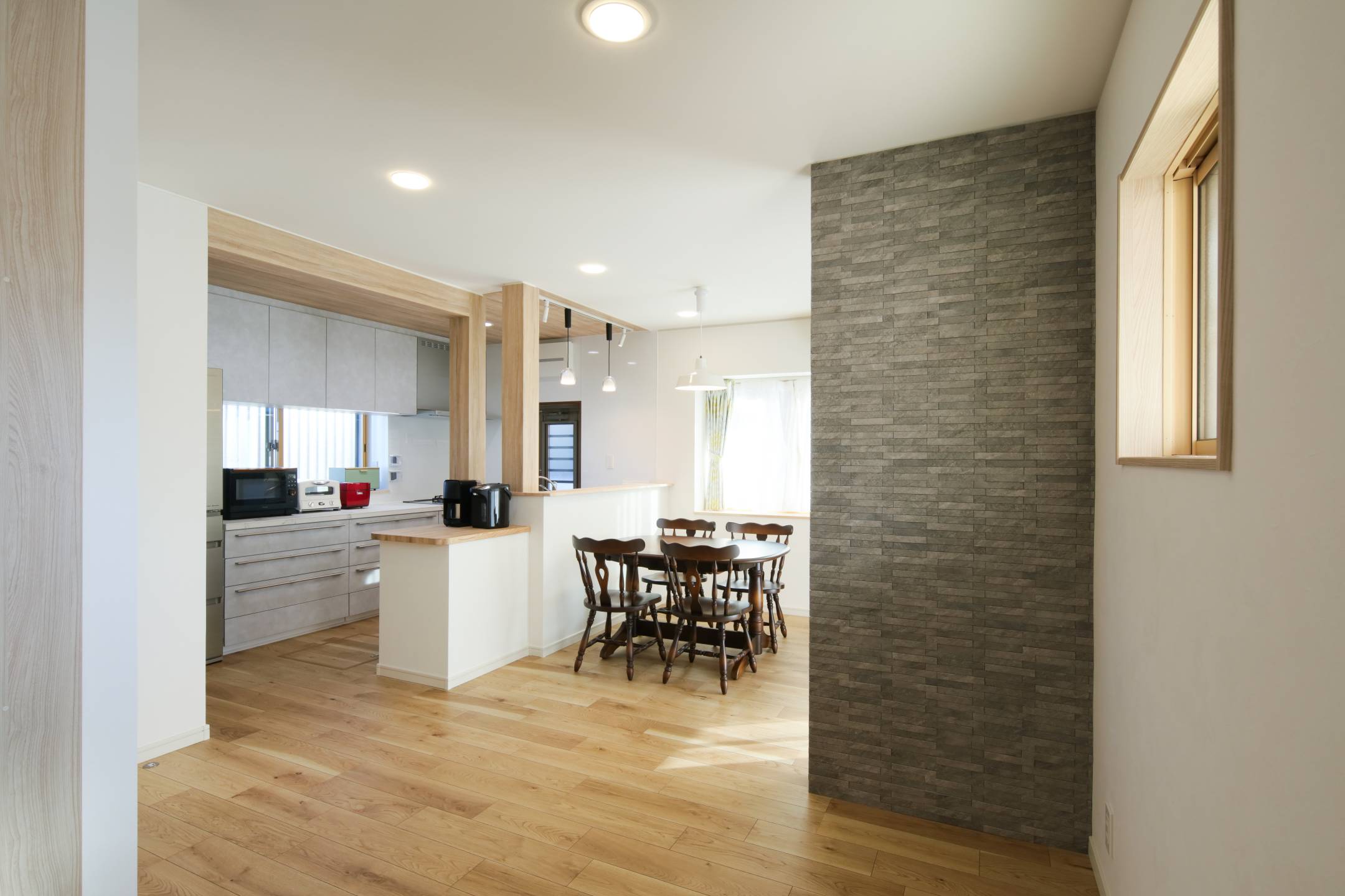 ダイニングにはエコカラットを取り入れ、上質で調湿性のある壁面に。ご主人さまお気に入りの絵も、リビングに美しく飾ることができ、ご家族の想いが詰まった快適な空間が完成しました。