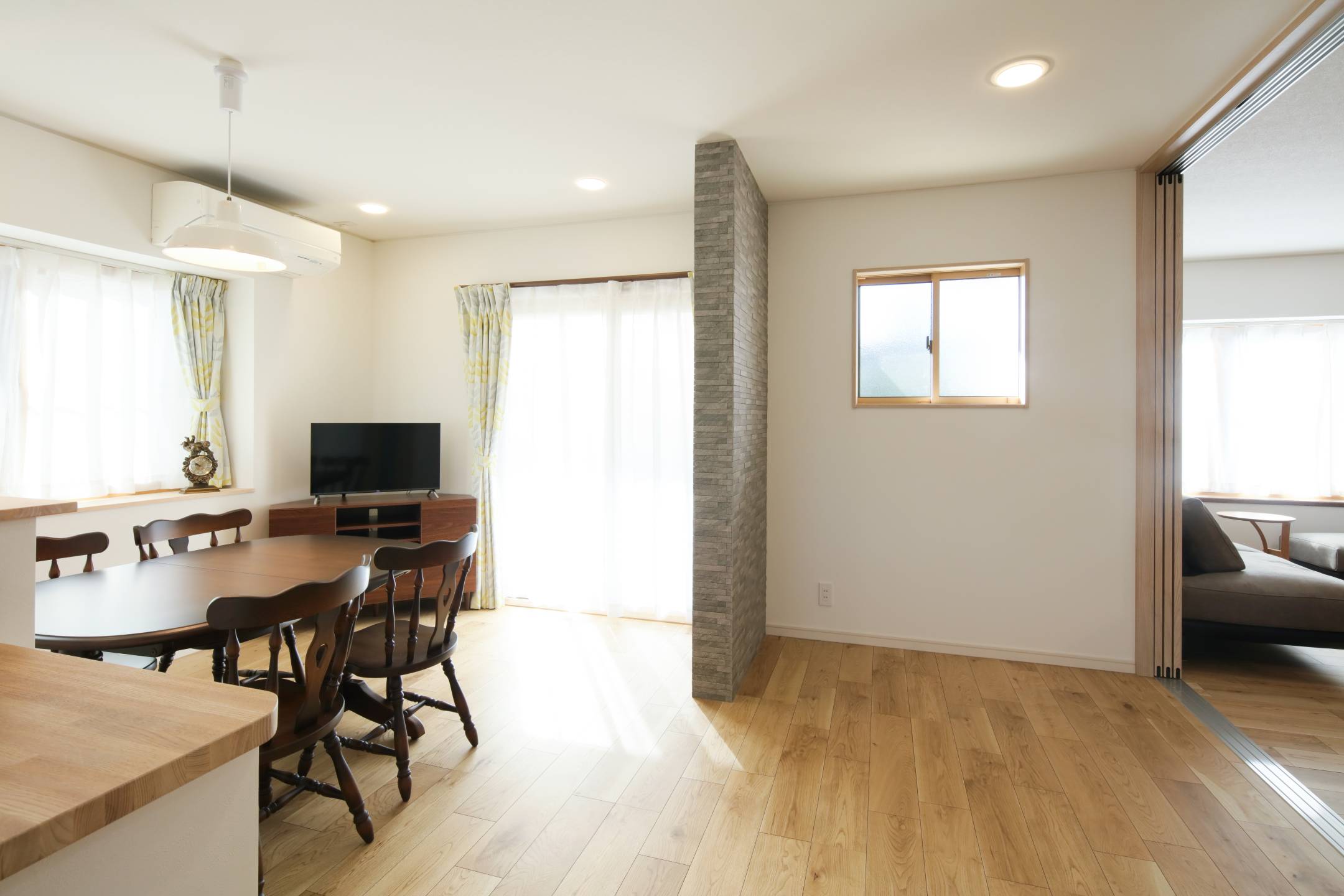 キッチンとダイニングとの間仕切り壁撤去、内窓設置、クロス貼替え、フロア張替え、照明取替え