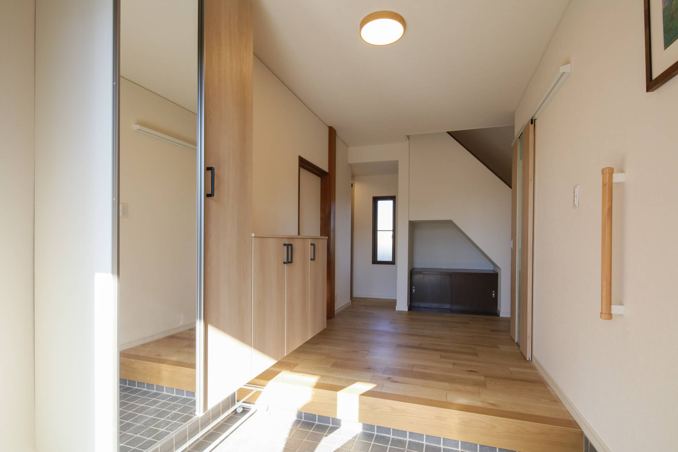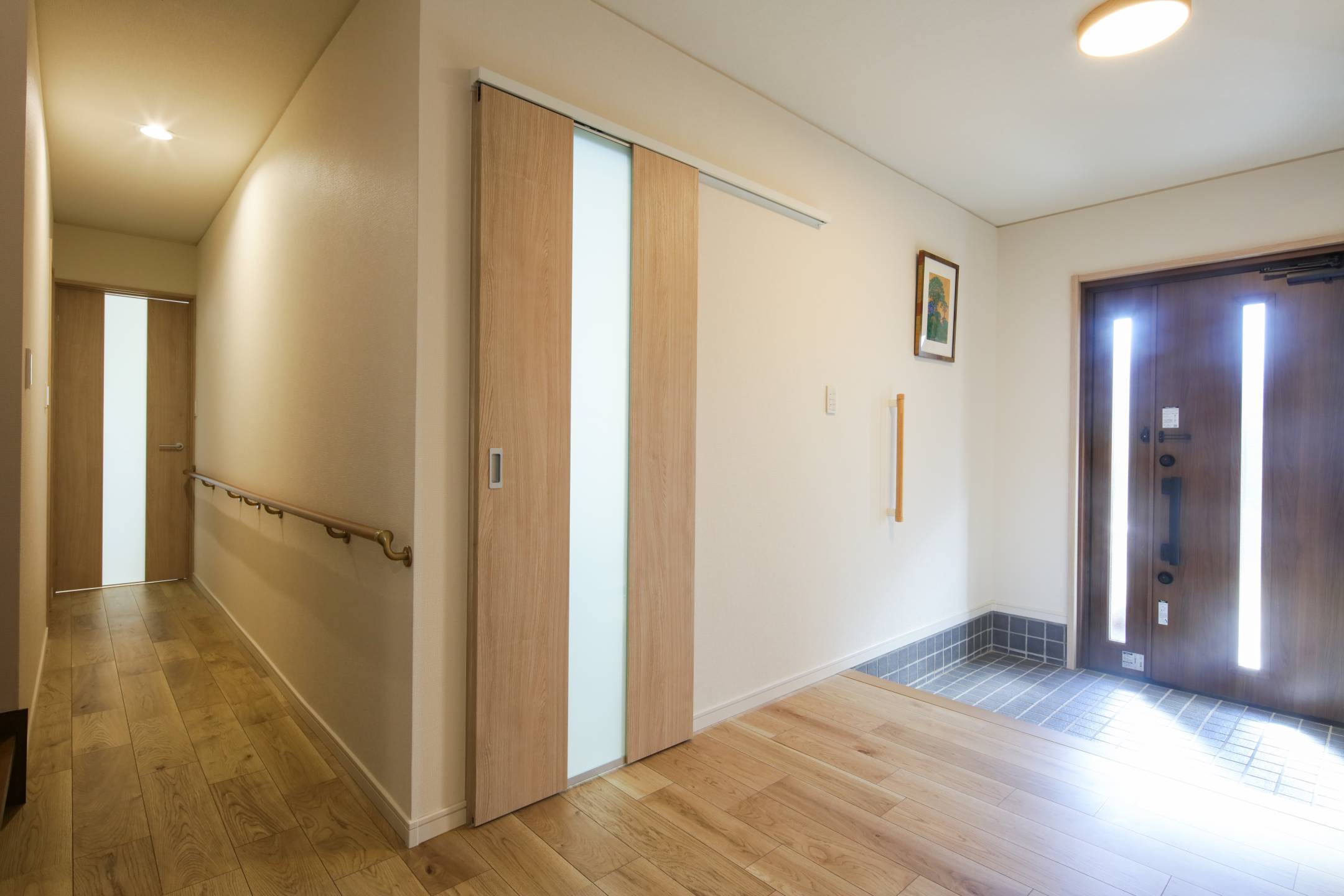 生活動線を見直し、主玄関のみを使用する形としたことで空間がよりすっきりと整い、副玄関は使用しない仕様に変更しました。