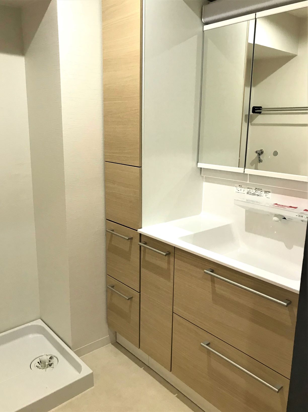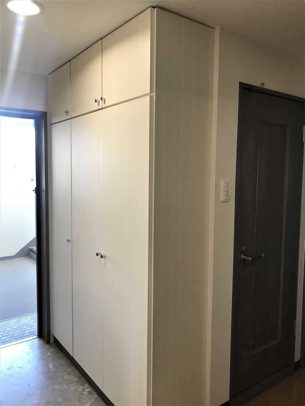 システムキッチン取替え、床張替え、クロス貼替え、洗面台取替え、和室と押入れのリフォーム、玄関収納の扉取替え -