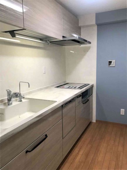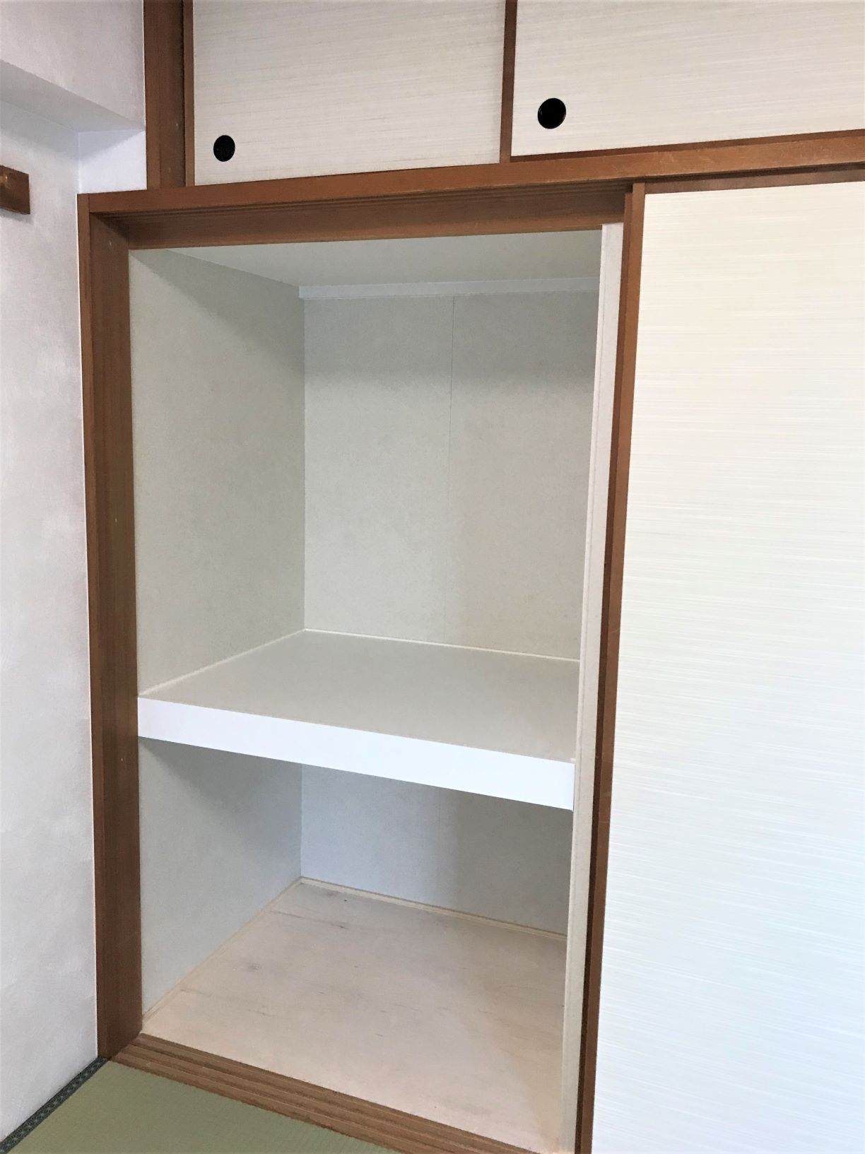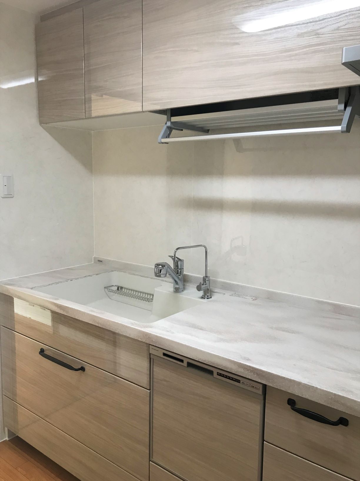 キッチンは、IHクッキングヒーター・食器洗い乾燥機・昇降式吊戸棚もついてお料理が楽しくなるようにご提案させていただきました。和室は、畳と襖だけでなく変色や変形が気になる敷居も取替えして真新しい空間に仕上げました。また、押入れは使いづらくてお困りとのことだったため、洋服がたくさん掛けられるようにハンガーパイプを設置し、調湿壁材を貼って結露対策もおこないました。