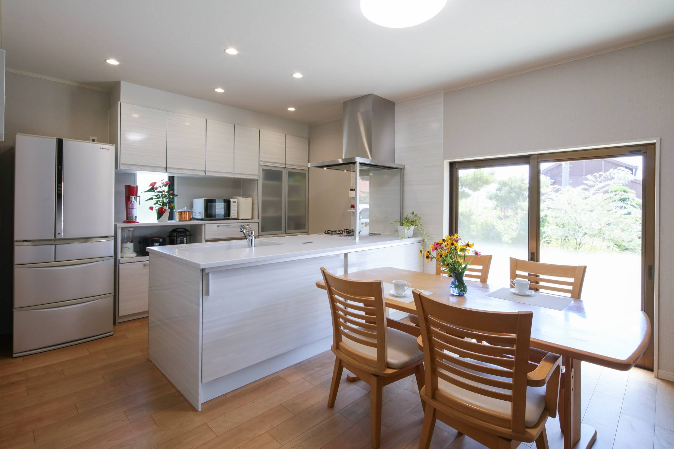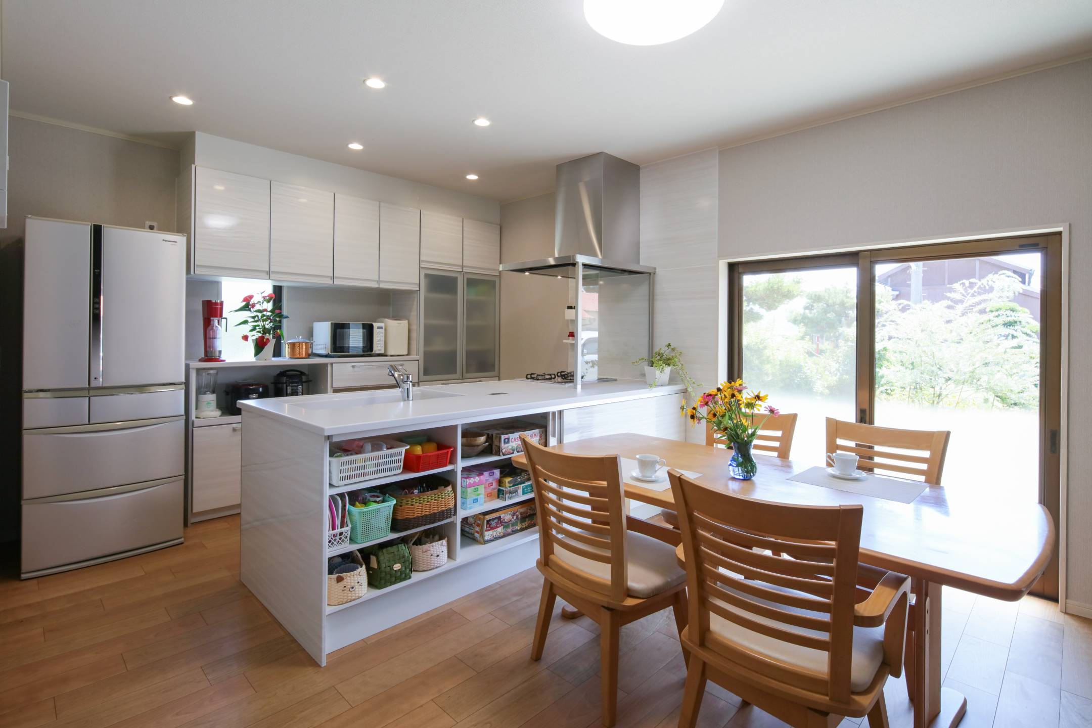 オープンキッチンをご希望でしたので、ペニンシュラキッチンで開放的な空間をご提案しました。