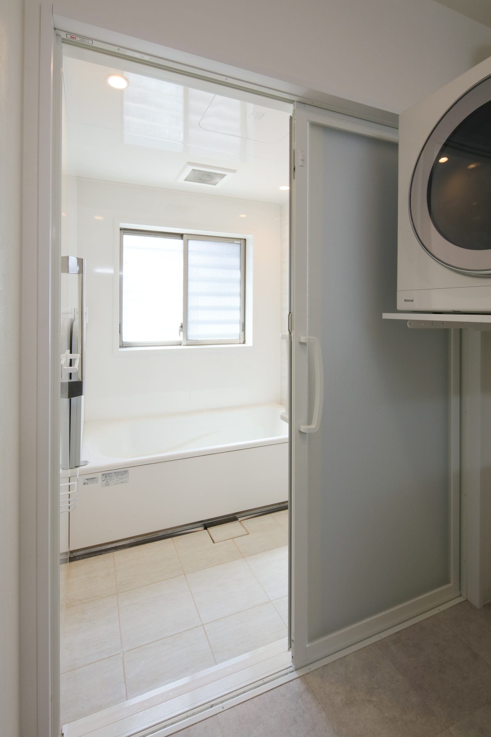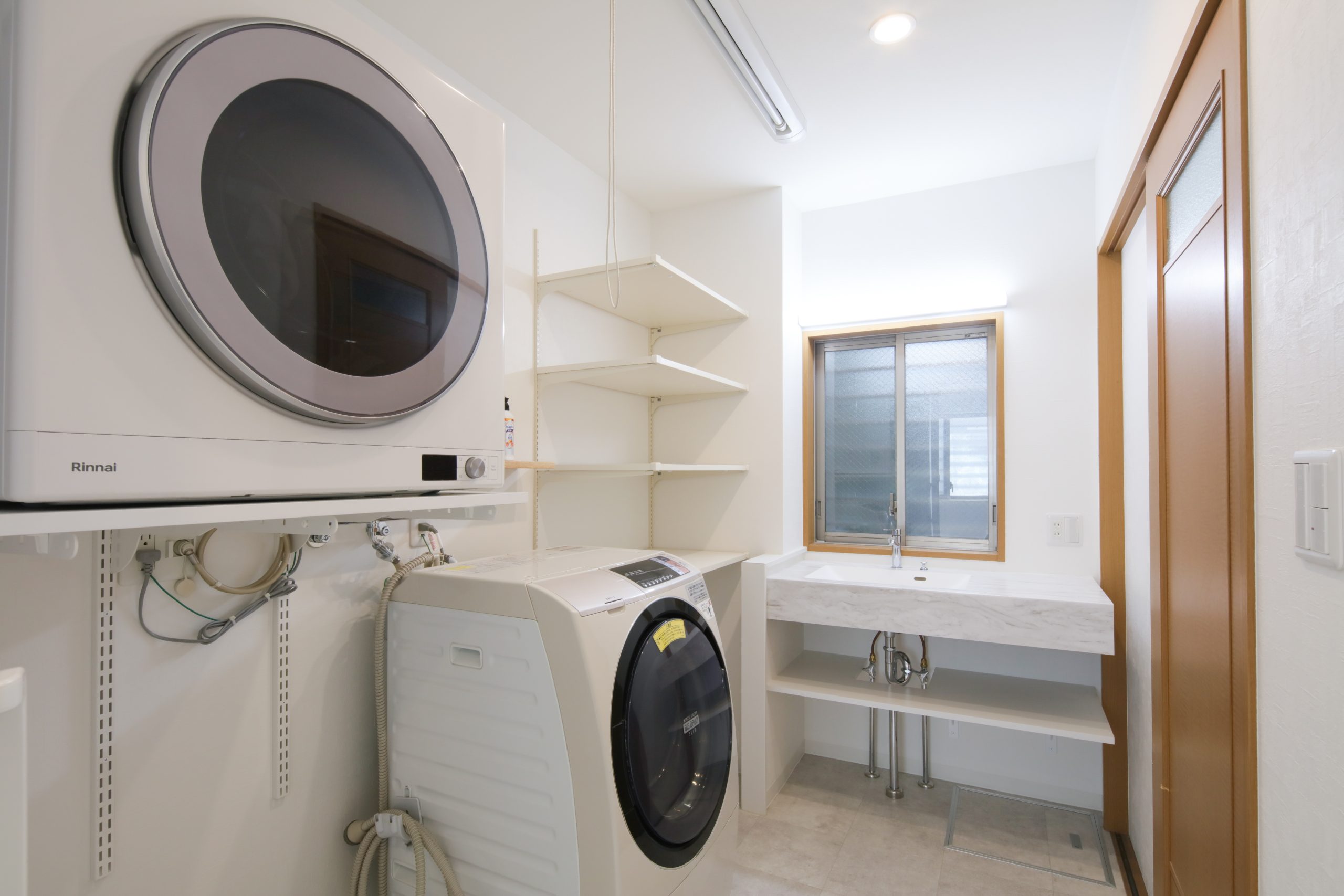 ウルトラファインバブル付き給湯器と衣類乾燥機の設置をご希望でした。衣類乾燥機は洗濯機の上ではなく横並びで設置したいことと、洗面化粧台は普段あまり使わないためコンパクトなもので十分とのことでした。