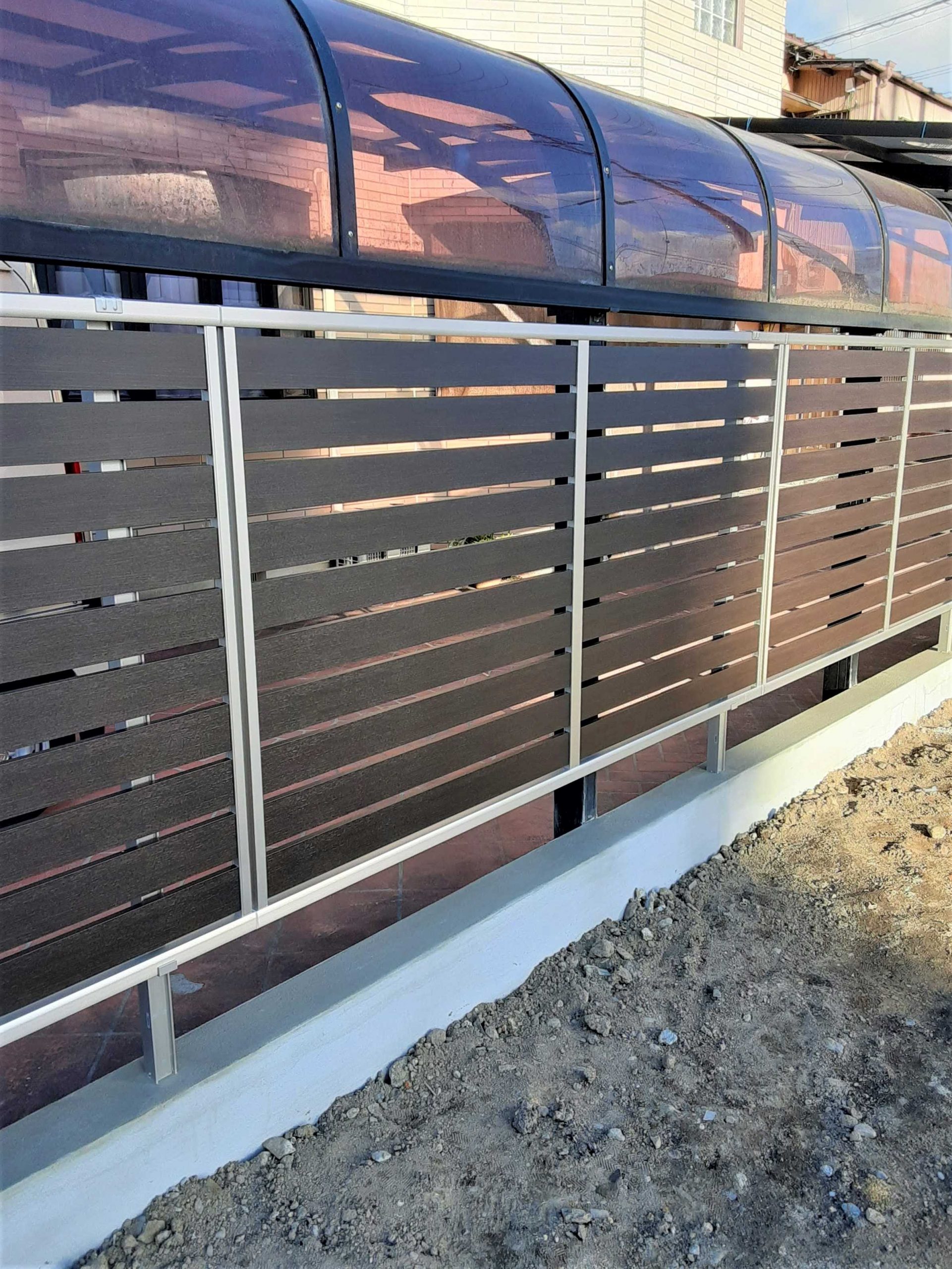 既存のブロックを活かしながら、カーポートの設置状況にも合わせた商品をご提案させていただきました。フェンスの高さが周りからの目線を遮る位置となるように調整させていただきました。